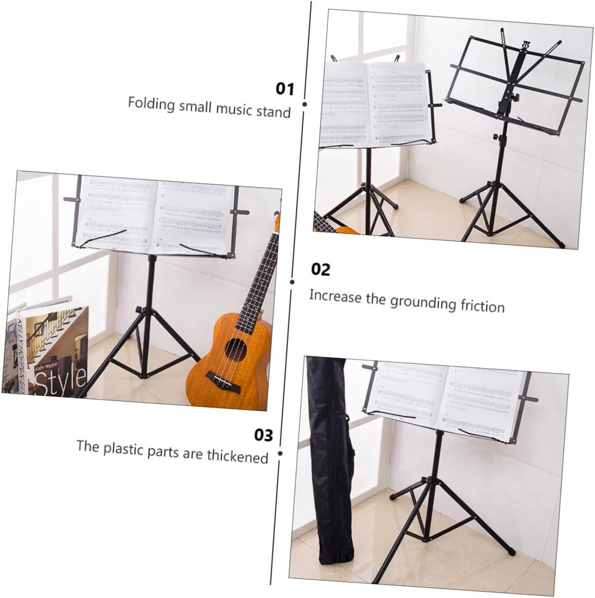 Package List 1 x music stand 1 x storage bag Features -Color: Black travel book stand -Product Info:Music stand Height range: 70-140cm lightweight music stand -Material: iron, rubber, PP portable book stand -Size: 70.00X46.00X30.00cm/27.51X18.08X11.79in book holder stand - Large panel design, can hold large sheetmusic, convenient to use music book stand. - 70-140cm telescopic design to meet yourdifferent needs small portable music stands. - Strong bearing weight, can hold multiplebooks stably folding book stand. - Aluminum alloy telescopic connector andthickened , sturdy and durable to use music book holder. - High flexibility sheet music clip,prevent page from slipping Folding Music Holder.Goods Informationfreestanding book stand Made of premium iron, PP and rubbermaterial, this foldable telescopic sheet music stand can be adjusted between70cm to 140cm.floor book stand With 3 sections adjustable design, this stand can meet yourdifferent needs