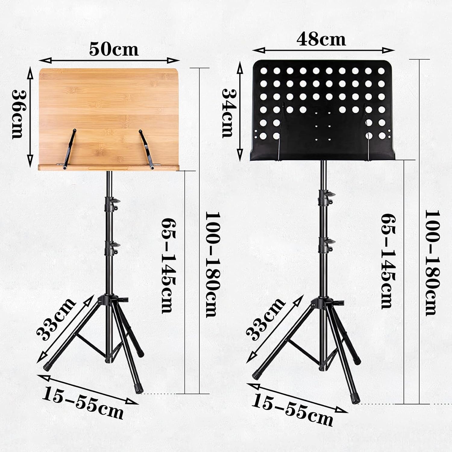 Name: Convenient Folding Music StandMaterial: metal iron/woodProcess: paintColor: Black/WoodSize: adjustable height 100-180cmApplicable: Carrying out, playing at home, suitable for A4 size score book, can be used in recording and arrangement, professional performance, training and teaching, home practice, etc.The package includes:1x music stand1x sheet music bag