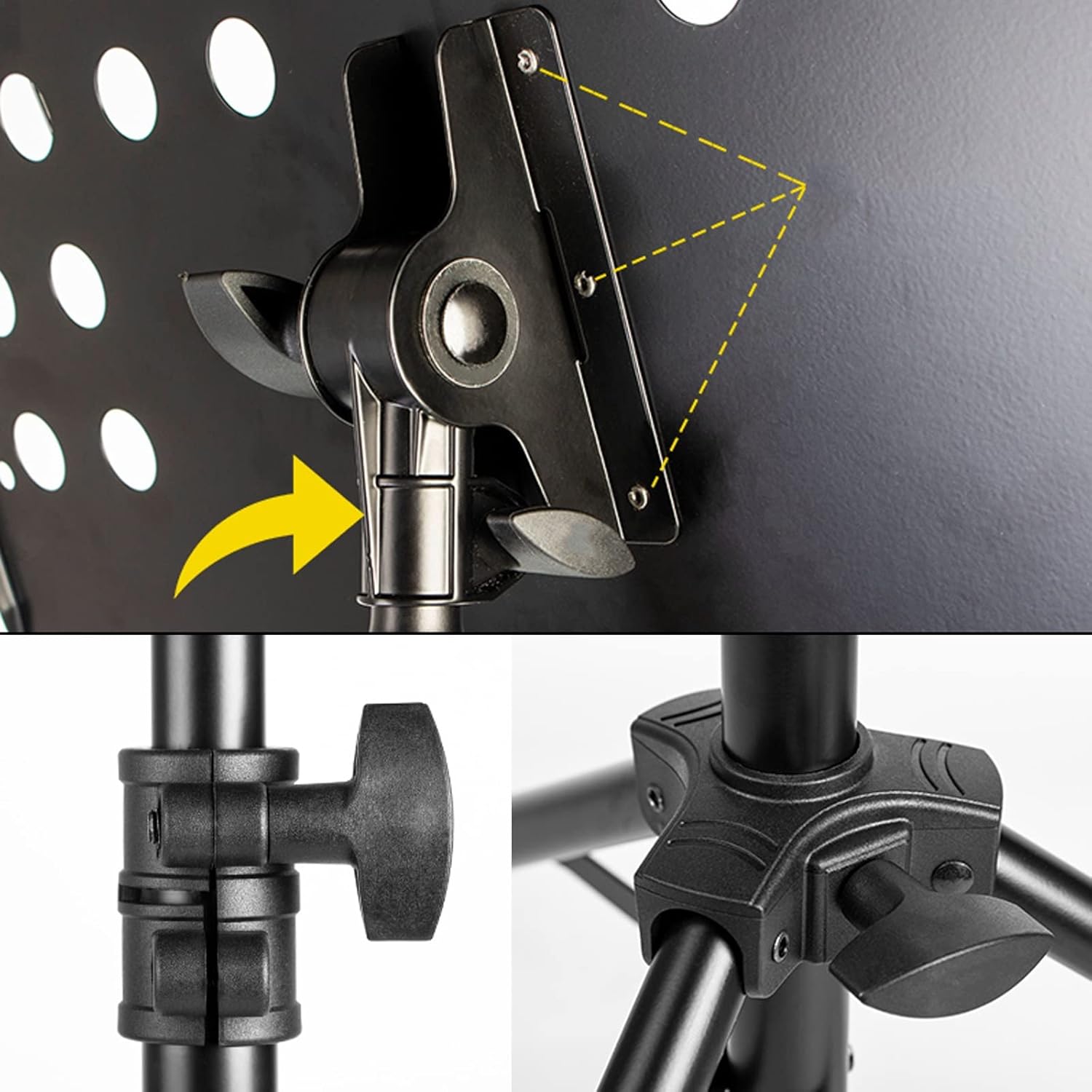 Name: Convenient Folding Music StandMaterial: metal ironProcess: high temperature electrostatic paint processColour: BlackSize: Adjustable height 90-150cmApplicable: Carrying out, playing at home, can be used in recording and arrangement, professional performing arts, training and teaching, home practice, etc.The package includes:1x music stand1x sheet music bag