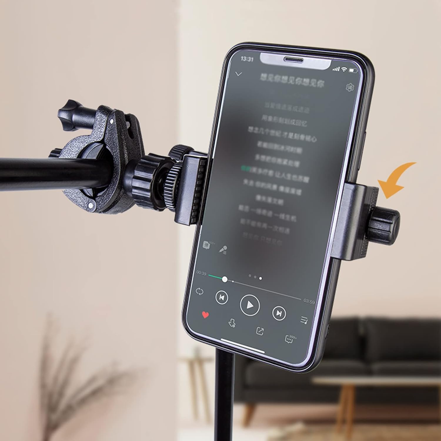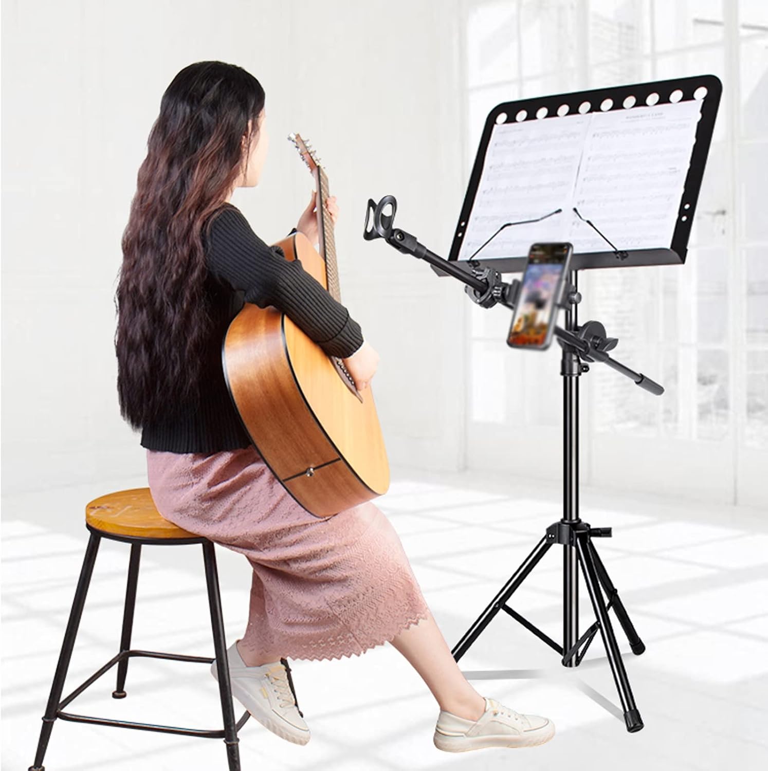 Name: Convenient Folding Music StandMaterial: metal paintProcess: high temperature electrostatic paint processColour: BlackPanel size: 48x34cmAdjustable height 0.9-1.5mApplicable: Carrying out, home performance, can be used in recording and arrangement, professional performance, training and teaching, home practice, live broadcast, stage performanceThe package includes:1x Music Score Microphone Stand All in One1x Live phone clip1x Music Rest Package