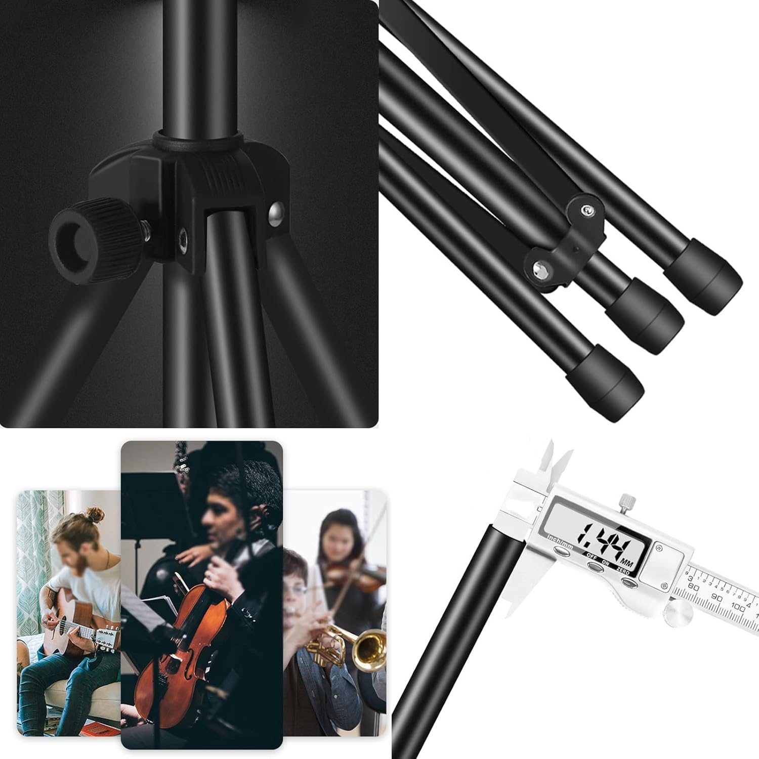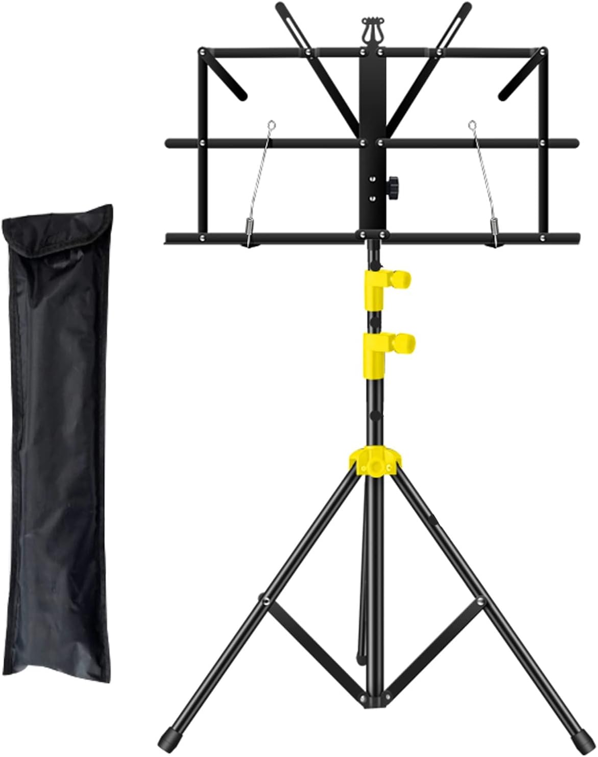 Name: Convenient Folding Music StandMaterial: metal ironProcess: high temperature electrostatic paint processColour: BlackSize: Adjustable height 75-175cm, 60cm after foldingApplicable: Carrying out, playing at home, can be used in recording and arrangement, professional performing arts, training and teaching, home practice, etc.The package includes:1x music stand1x sheet music bag