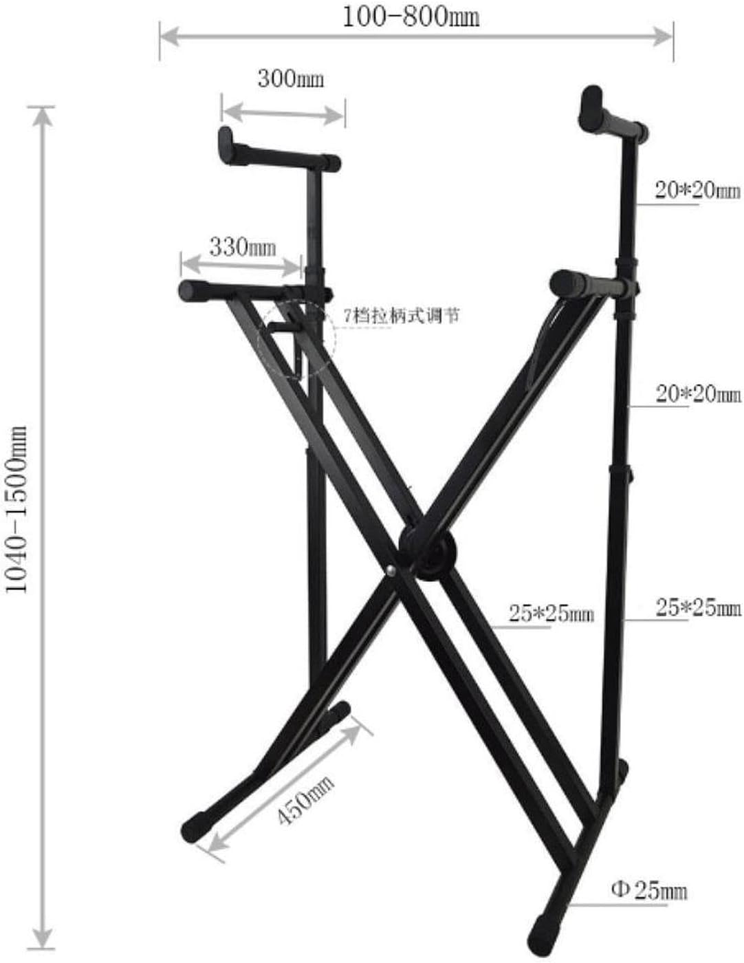 Description: This piano keyboard stand is designed to support two electronic keyboards at the same time, making it perfect for performances and studio environments where space is limited. Its double X shaped frame ensures excellent stability, keeping your instrument safe even during the most dynamic performances. The stand requires no tools for assembly, allowing for quick and easy setup and removal. With its adjustable height and width, it can accommodate a variety of electronic keyboards or pianos, providing versatility for different instruments. Made from iron and equipped with non-slip foot pads, this stand is built to last and ensures safety in any usage scenario, from stage performances to home practice. Specification: - Material: Iron Size Chart: Height 104cm-150cm/40.94inch-59.06inch Length 10cm-80cm/3.94inch-31.50inch Width 45cm/17.72inch Package Includes: 1 Piano Keyboard Stand
