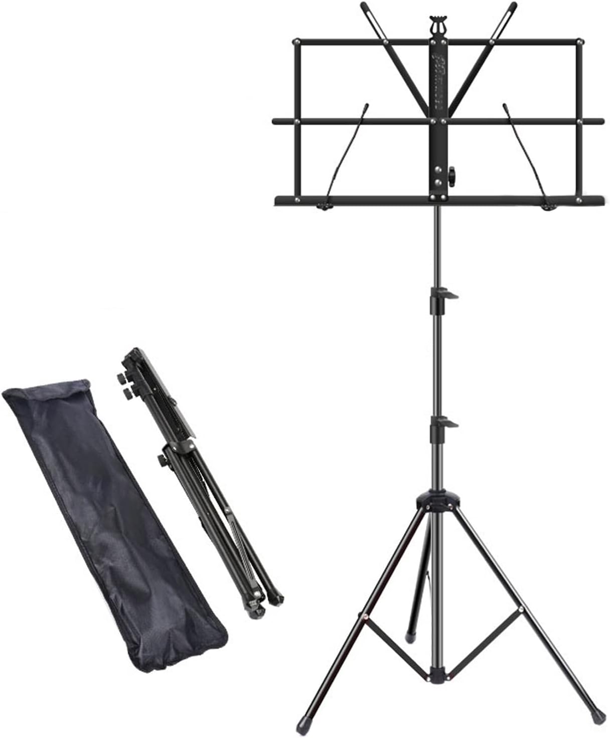 Name: Convenient Folding Music StandMaterial: iron/engineering plasticProcess: paintColor: blue/pink/blackSize: Adjustable height 1.3m, lower 66cm, folded only 48cmApplicable: Children can carry them when they go out and play music, not suitable for heavy books and teaching materialsThe package includes:1x music stand1x packing bag