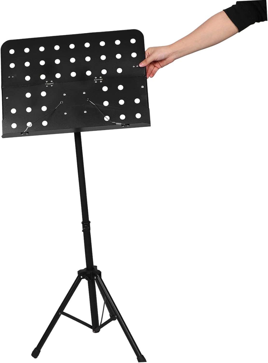Package Include 1x music stand Features -Artistic appeal: the black musical note design enhances the stage performance atmosphere, boosting the professional image of the musician music book stand -Material:Plastic, Iron tabletop music book stand -compatibility: ideal for multiple instruments, including piano, guitar, and band ensembles, offering reliable support folding music stand portable -Easy to carry: the portable and foldable design makes it easy to carry to any performance or practice location, catering to on the go needs foldable music stand portable -Color:Black keyboard music stand -Height adjustable: the adjustable height feature suits users of varying heights, ensuring a comfortable reading position and minimizing neck fatigue electric piano music stand -Size:140.00X48.00X4.50cm/55.02X18.86X1.77in piano music holder -Durable construction: constructed with professional grade materials, ensuring it remains in excellent condition for long term use by music lovers book stand for readingGoods Informationtravel music stand Its sturdy construction can support various types of sheet music, making it an essential accessory for musicians of all levels.piano book stand Crafted with durability in mind, this music stand is made from durable materials that ensure use.foldable music book holder The sleek black finish gives it a professional appearance, suitable for any performance setting