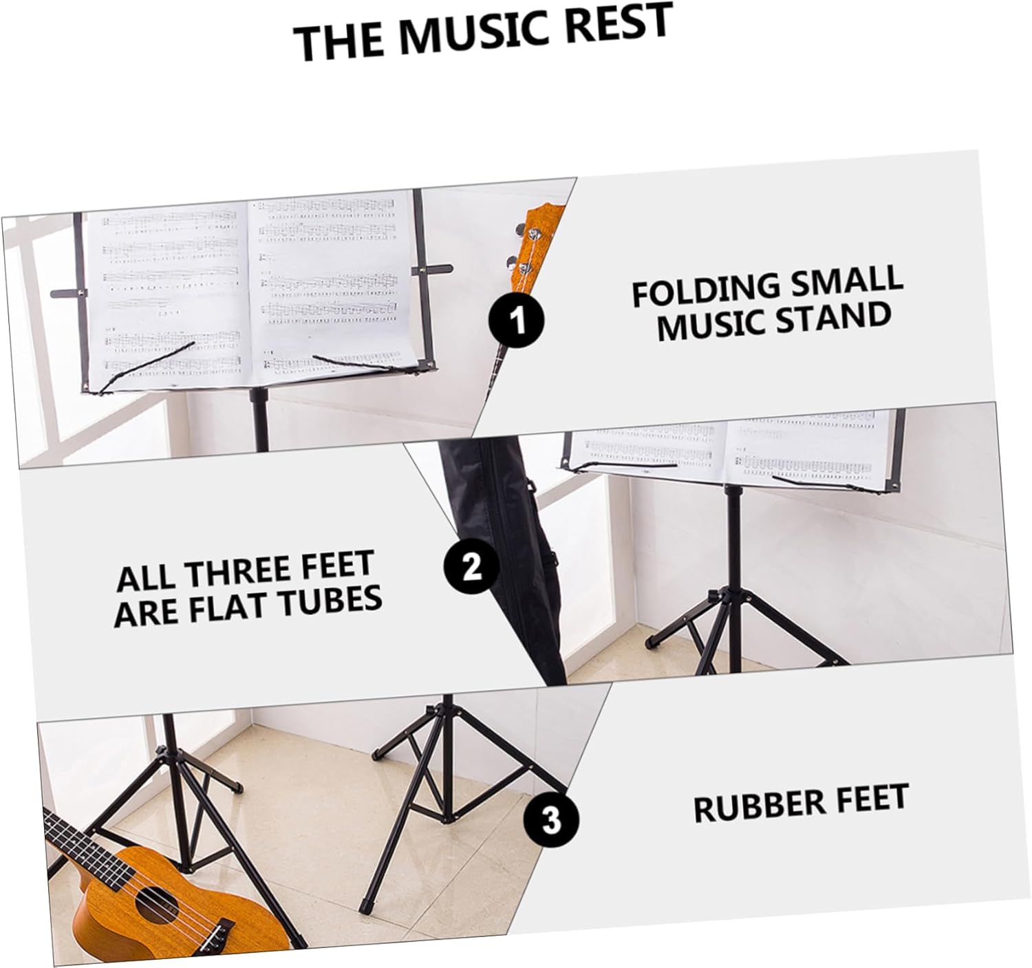 Package List 1 x music stand 1 x storage bag Features -Color: Black Foldable Music Stand Height range: 70-140cm folding book stand -Size: 70.00X46.00X30.00cm/27.51X18.08X11.79in instrument music holder -Material: iron, rubber, PP table music stand - Suitable for use in any rehearsal orperformance setting small portable music stands. - Can be given as a present to yourmusician family and friend musical book stands. - Thickened tripod , holding your sheetmusic or book steadily lightweight music stand. - 360 degree adjustable, you can adjust theangle accordingly Book Stand. - Keeping your music pages securely inplace for easy viewing travel book stand.Goods Descriptioninstrument music holder If you've been looking foldable telescopicsheet music stand, then your search is over! That's because our product canprovide great help in holding sheet music and book, for performancesetting or rehearsal