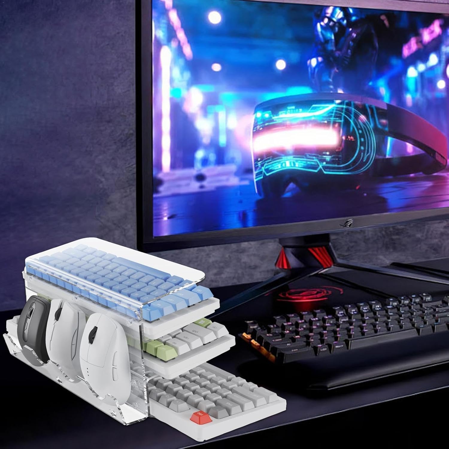 Keyboards Storage Holder | 3-Tier Frame Keyboard Stand Shelf, Lightweight Keyboard Storage Tool for Study Room, Exhibition Halls, Collection Cabinets, Keyboard StoresKeep your desk tidy and organized with this keyboard- desktop organizer. It has a large capacity storage space for your keyboard, , pens, notebooks, and other office supplies. You can easily access your items without taking up too much space your desk. The organizer is made of and eco-friendly materials with smooth surfaces that are easy to clean. You can complete the installation in minutes with the included screws and tools. Specification:Name: Acrylic Keyboard Display Stand: AcrylicAvailable colors: black, transparentSize: about 15.44*26.5*15.24cm/6.08x10.45x6inPacking List:1 *Acrylic Keyboard Display StandNotes:1. Due to the different display and lighting effects, the actual color of the product may be slightly different from the color shown in the picture.2. Due to manual measurement, please allow a measurement deviation of 1-3cm.