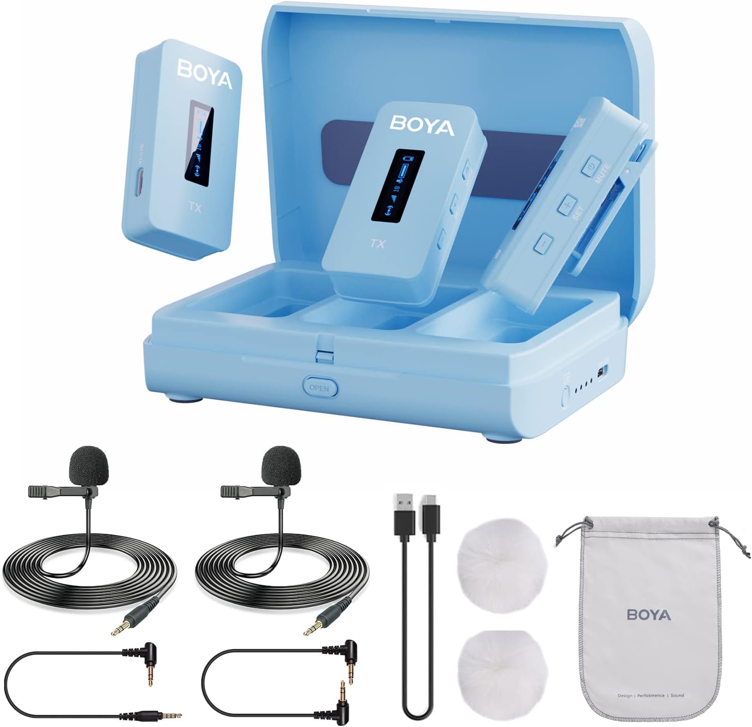 | BuiltIn Media | 1× BY-XM6 RX Receiver, 1× BY-XM6-K2 BOX Charging Case, 2× BY-XM6 TX Transmitter, 2× Lavalier Microphone, 3× USB-C Charging Cable |