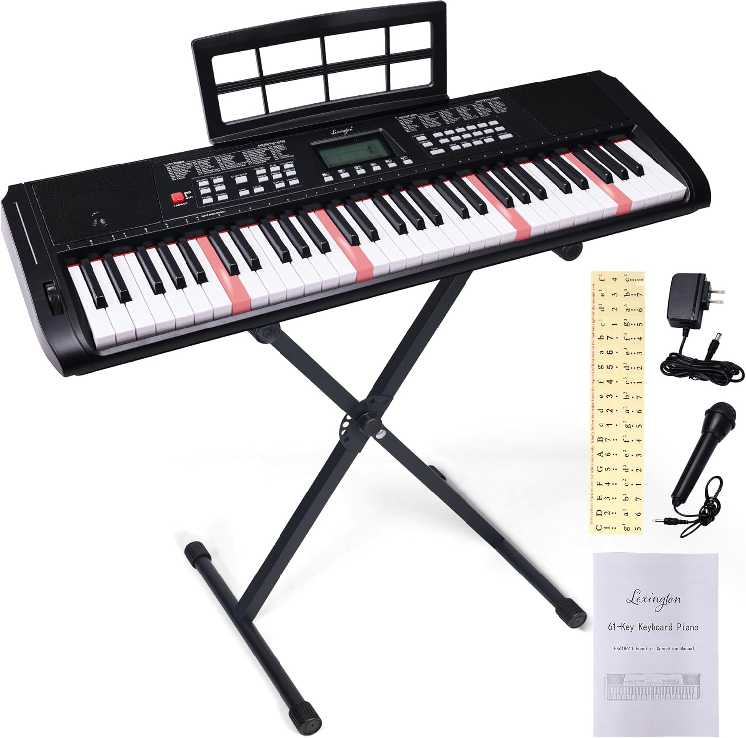 Lexington, Unleash Your Inner Musician Anywhere, Anytime Imagine a piano that grows with you—from your first note to your first performance. This 61-key portable keyboard is your all-in-one music partner, designed for beginners, students, and music lovers who demand both quality and convenience. Start Playing Right Out of The Box We've thought of everything. Your new keyboard arrives as a complete set, including a stand to play at the perfect height, a sustain pedal for richer notes, and even a microphone for unforgettable family karaoke nights. It's the ultimate ready-to-play package. Learn Smarter with Technology Shorten your learning curve with our intuitive app connectivity. The dual Bluetooth links your smartphone or tablet for two-way interaction: * LED Guide Lights: Follow the lighted keys on the keyboard to learn new songs quickly and funly. * App Integration: Access a world of interactive tutorials, sheet music, and games that make practice something to look forward to. A Universe of Sounds at Your Fingertips With 600 incredible tones (from grand pianos to synth pads) and 600 dynamic rhythms (from rock to pop), you'll never run out of creative possibilities. Compose, record, and explore any genre of music. Your Music, Without Limits True freedom means playing without cords. Power your keyboard with a common power bank via USB or AA batteries and take your music to the backyard, the park, or on vacation. The rugged packaging ensures it arrives safely at your doorstep. Technical Specifications & What's In The Box: * Keyboard: 61 Standard-Size Keys, Touch Sensitive * Polyphony: 64 Notes * Sounds & Rhythms: 600 Tones, 600 Rhythms, 50 Demo Songs * Connectivity: Dual Bluetooth, MIDI In/Out, USB, Audio In/Out, Headphone Jack, Sustain Pedal Jack * Power: US Standard Certified Adapter (Included), USB for Power Bank, or 6 AA Batteries * Audio: Dual 3W Stereo Speakers * Included: Keyboard, Stand, Microphone, Sustain Pedal, Power Adapter, Keyboard Light, Note Stickers Order now and experience the joy of making music wherever inspiration strikes!