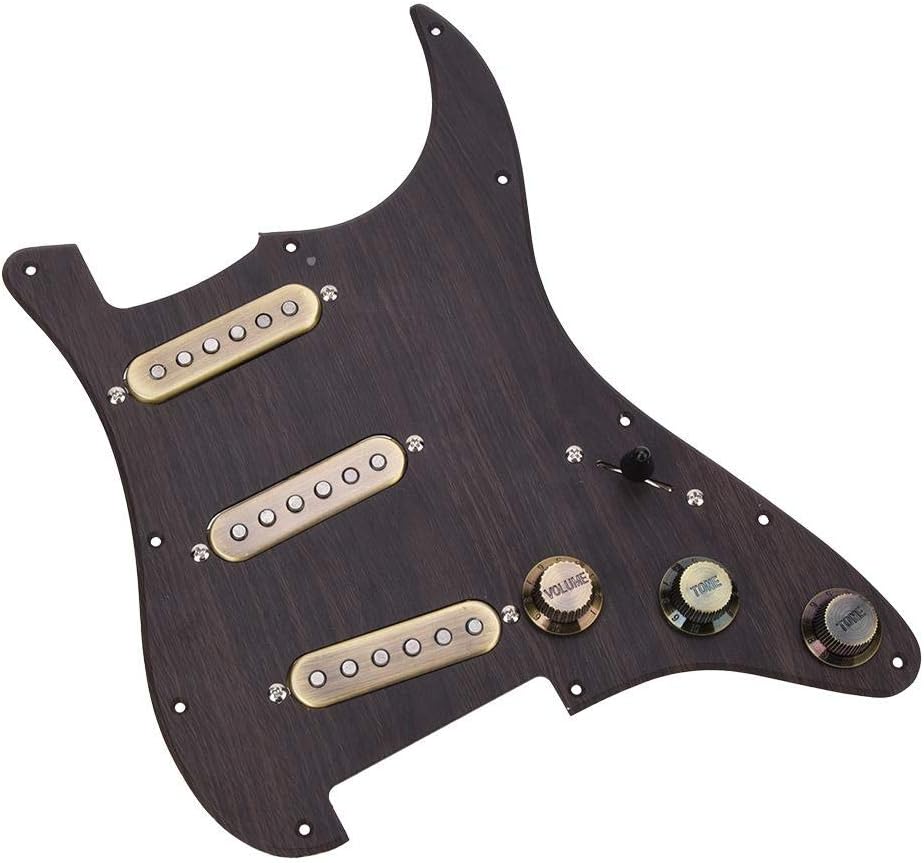 Specification:Item Type: Prewired Pickguard Pickup Set Color: Red Wood Color Material: Aluminum Alloy + Wood Pickup: ALNICO 5 Pickup R: 4.8 K Package List:1 x Loaded Pickguard 1 x Back Plate 17 x Screw