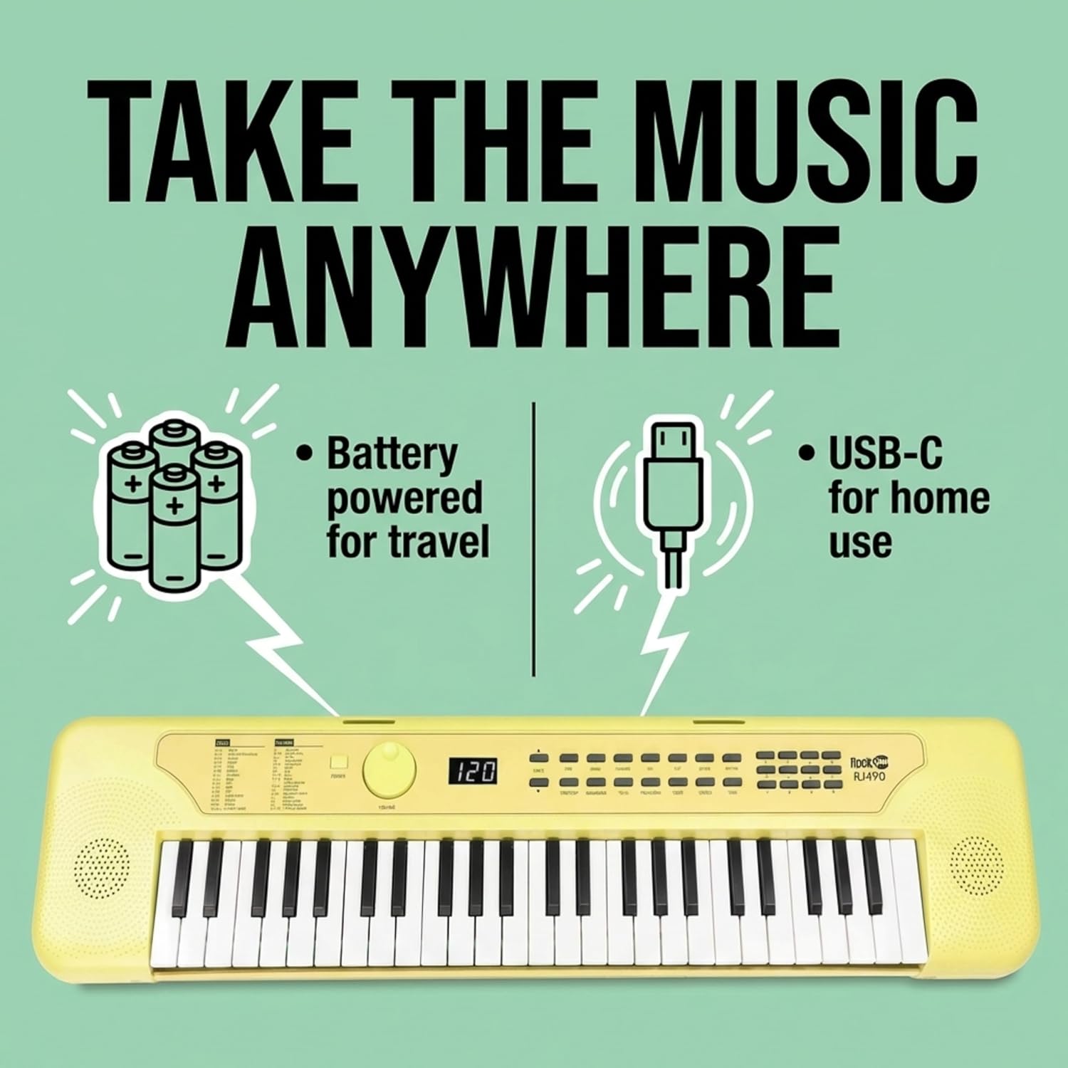 | Model Name | RockJam 49 Key USB Keyboard Piano Lemon Sherbet |