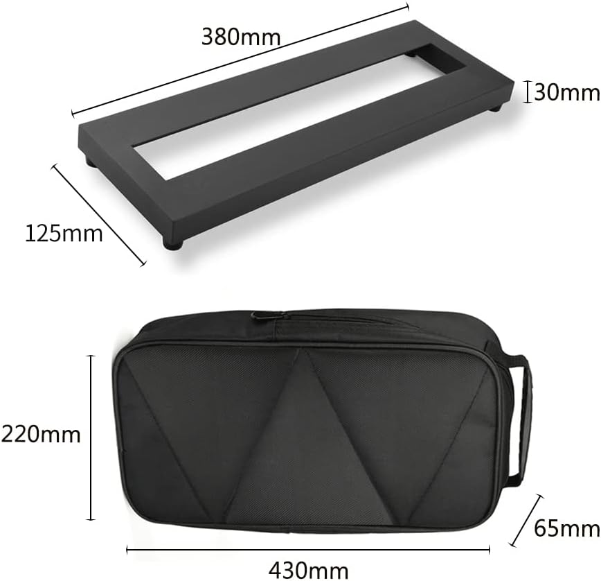 Specification: Features: Portable and Sturdy Construction: Aluminum alloy pedalboard features the lightweight portability to be carried around comfortably, solid built pedal rack easily hold up pedals between the slots, tidy up for cable management, ideal for guitarist to carry from gig to gig. Large Space for Pedals: Medium guitar pedal board offers large space to hold up a bunch of pedals. Professional Grade Adhesive Sticking Tape: Pre-applied sticking tape fastener tape finish on the top with professional adhesive offers the capability to fastern and organize your foot pedals on the pedalboard at your will with extra tape, easy to set up, reduce the installing time, more time for practising. foot pad, with high toughness soft rubber, can effectively prevent the pedalboard from sliding. Comes with a 600D oxford cloth padded carrying bag, safely and securely transporting your guitar effect pedals. Metal zippers, with , can be used for a long time, not easy to damage. Specifications: Style: Small size Material: Aluminum alloy Color: Black Item Size: 38 * 12.5 * 3cm / 15 * 4.9 * 1.2inch Item Weight: 280g / 9.9oz Package Size: 43 * 22 * 6.5cm / 16.9 * 8.7 * 2.6inch Package Weight: 600g / 21.2oz Packing List: 1 * Small Guitar Effect Pedal Board 2 * Fastener Tapes 1 * Carrying Bag