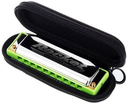 Specifications Item name Rocket Amp type diatonic Reeds 20 brass Cover surface stainless steel tuning Richter Reed plates 0,9 mm brass Reed plate surface brass Length 10,2 cm Number of holes 10 Key E Mouthpiece surface ABS Comb ABS, Green