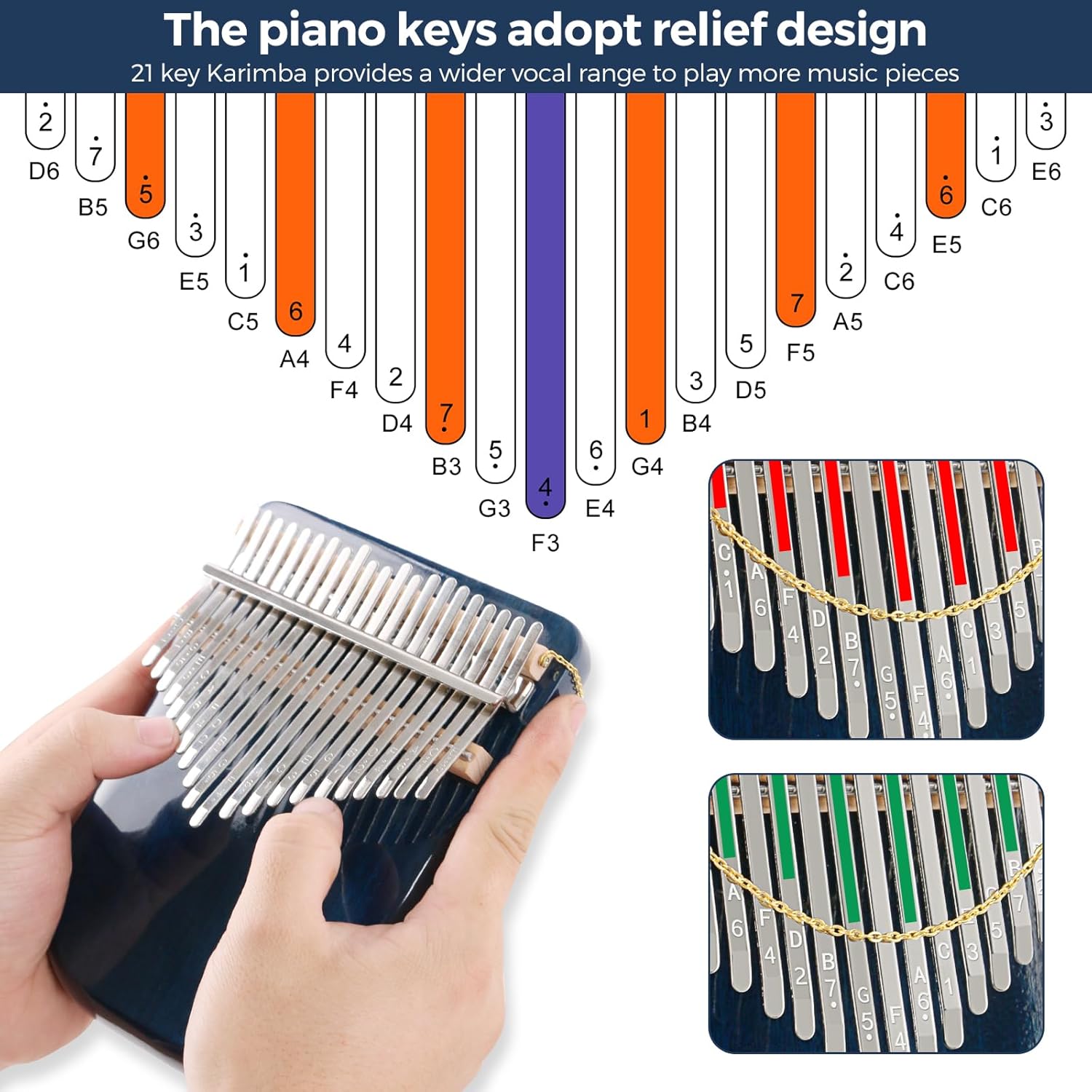 EASTROCK Karimba Thumb Piano 21 key Sapele solid wood Flat-board Portable Mbira Finger Piano with Study Instruction and Tune Hammer Wood Kalimba Gift for Adults Beginners Professiona