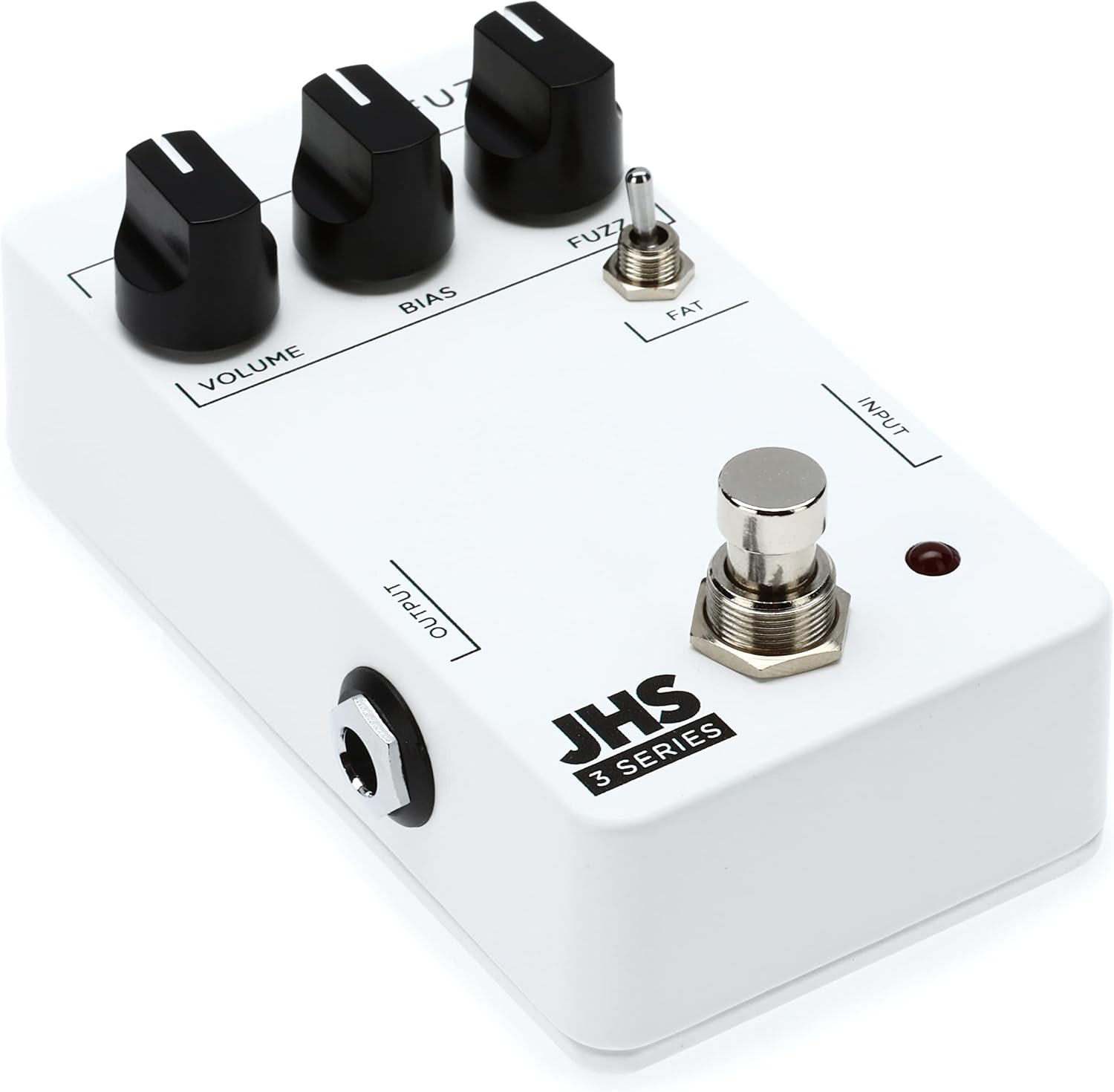 Across the board, guitarists agree: there’s nothing quite like a gnarly fuzz box! Stomp it on, and it compels you to churn out growling grunge chords or chainsaw-sounding solos. In the minimalist spirit of classic fuzz pedals, the JHS 3 Series Fuzz is a no-fuss, 3-knob unit — Volume, Bias, and Fuzz — that puts a massive range of fuzz tones underfoot. Unlike many fuzz pedals, however, the 3 Series Fuzz doesn’t have a single sweet spot — there are sweet spots no matter where you set the fuzz amount. And the unique Bias knob lets you tweak your tone all day long, from zipper rips to liquidy sustain and sputtering gated fuzz spasms! Moreover, the 3 Series Fuzz has a Fat switch for fortifying your tone with thick low end. Pro tip: the 3 Series Fuzz is a bomb bass fuzz, too! So, fuzz up your tone with the all-killer, no-filler 3 Series Fuzz pedal from JHS! Also includes 2 right angle Patch Cables