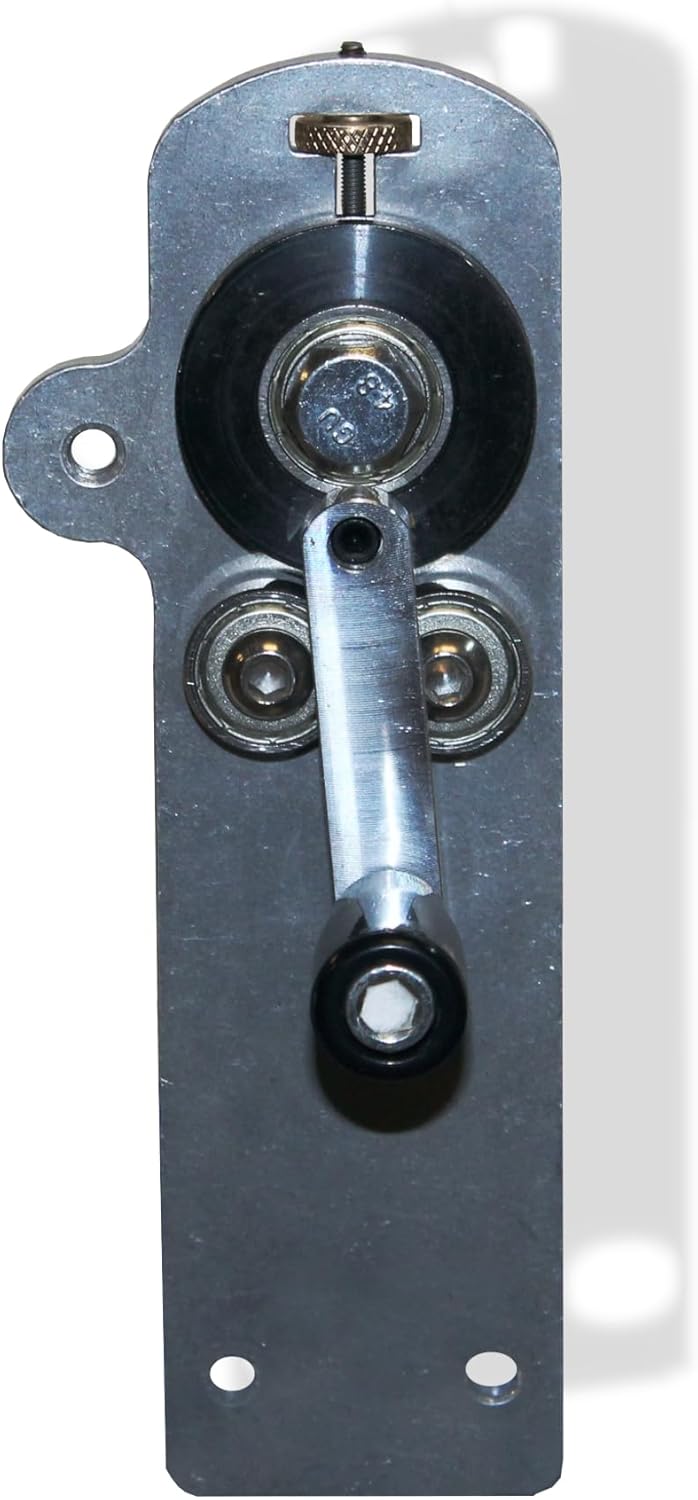 Fret Wire Bending Tool Luthier Tool Designed for locating bending fret wire to create radius' for inserting on fret board Adjustable Tool, designed for modern fret wire applications. Also easier fret wire bending and shaping to specific radius Luthier Tool Designed for bending and creating a radius on fret wire High quality machined tool for bending tanged fret wire to a desired radius. Aluminum and Steel construction. Specifications:Fabricated Aluminum mounting plate, designed for attaching to tool bench or clamping to a bench for use. Overall plate height is 6 17/32" Thickness of plate is .24" (just under 1/4") Main wheel is hardened slotted wheel (on edge) for use with fret wire tang. Mounting holes are 1 11/64" on center, 13/46" diameter Handle is offset plastic handle to allow for easy movement of fret wire through tool.