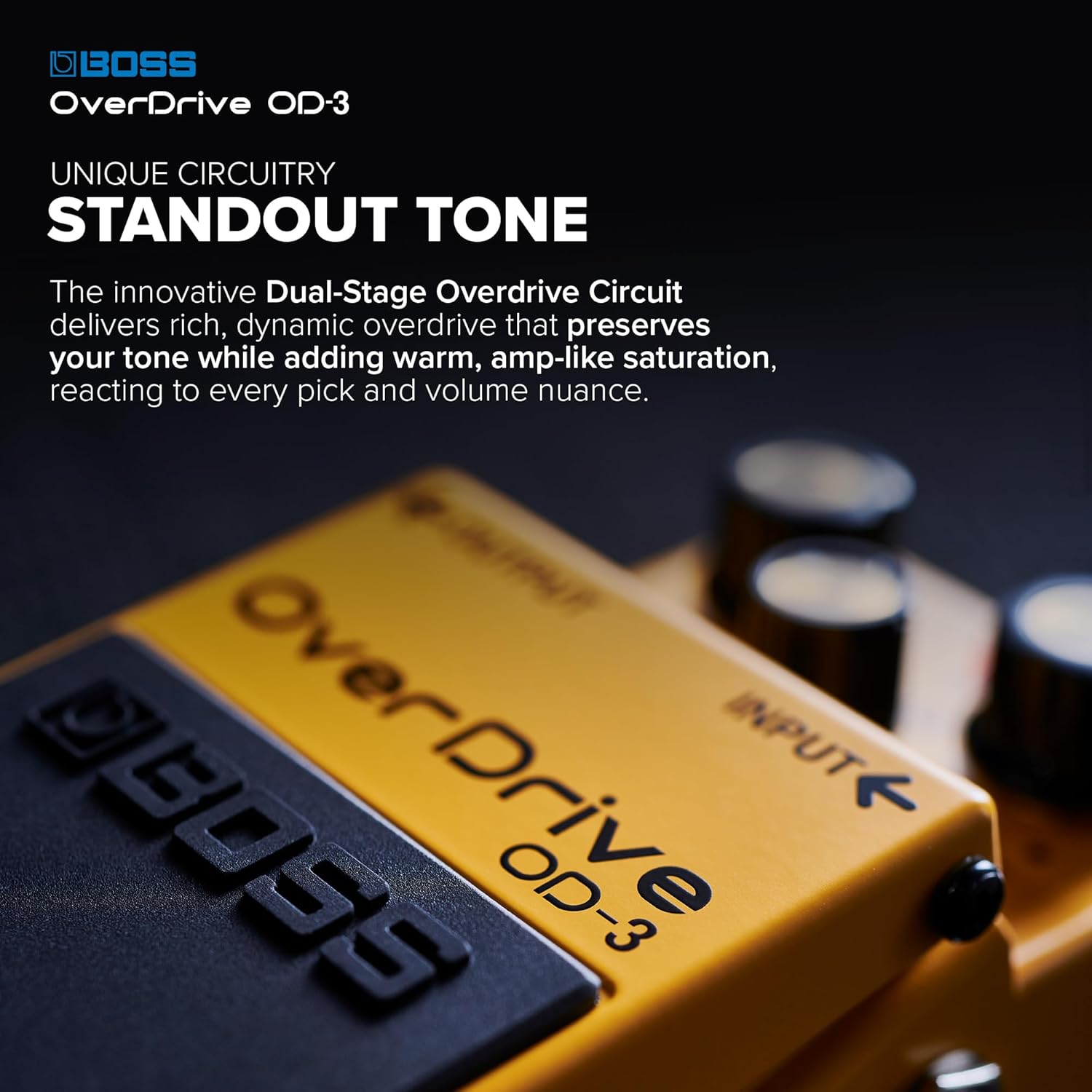 Built in the tradition of the legendary BOSS overdrives, the OD-3 OverDrive pedal gives guitarists a greatly expanded range of smooth overdrive tones and improved response while staying true to the original.