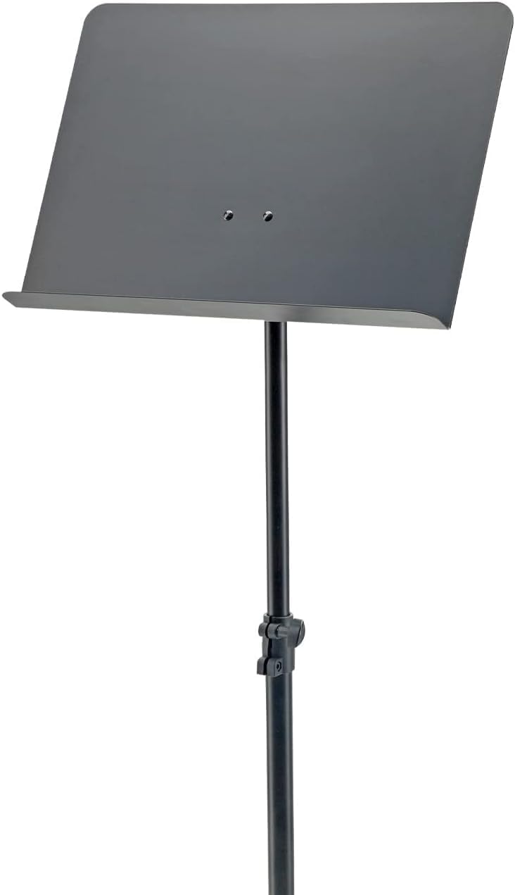 K&M 11960 stable orchestra music stand made out of steel. Connecting parts made out of durable plastic. The music desk can be removed and attached easily with its user friendly and practical quick release mechanism. A large wing nut makes it easy to adjust the angle. The music desk can be adjusted variably by a clamping sleeve that protects the surface.