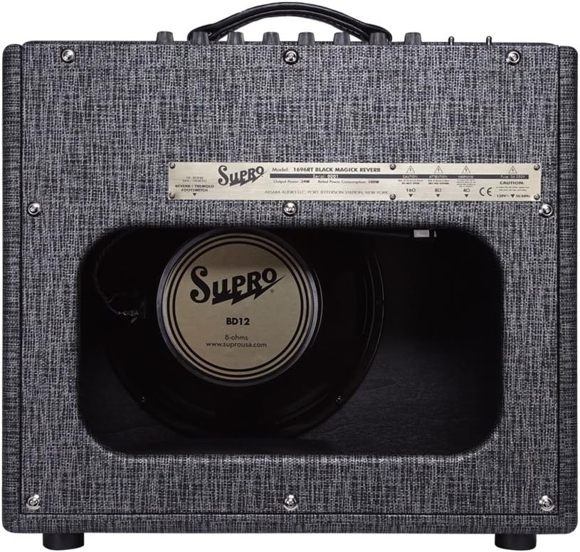 The Black Magick Reverb amplifier adds artist-requested features to the award-winning recreation of the vintage Supro amp loaned by Jimmy Page to the Rock and Roll Hall of Fame Museum.25 Watts Class ADeveloped in collaboration with Lenny Kravitz, the Black Magick Reverb captures the mid-range grind and signature sound of the original model while adding all-tube reverb, 2-band EQ and a master volume knob for maximum flexibility. The amp is available as an all-tube head or in a 1x12 combo format.2 channels with Parallel Link and Shared 2-Band EQMuch like the original Black Magick, the reverb version features two independent preamp channels that can be linked together using the 1 2 input jack to obtain the fattest possible tone. Additional gain has been added to both preamp channels in the Black Magick Reverb, while the dual-gang, single-knob tone control from the non-reverb model has been reconfigured with separate treble and bass knobs for a wider range of possible sounds. The Black Magick Reverb's 6-spring reverb pan is driven by both channels and then summed with the dry signal just before the master volume control.Output Tube Bias Modulated Tremolo, Foot-Switchable, 6-Spring All-Tube ReverbAn updated, tube-based LFO circuit provides bias-modulated output tube tremolo with double the speed range of the original Black Magick. The output stage of the Black Magick Reverb is based on the same Class-A power amp as the non-reverb model, utilizing a matched pair of 6973 tubes and a custom-made Supro output transformer with 16-ohm, 8-ohm and 4-ohm output options. The combo version of the Black Magick Reverb features the same, custom-designed 12 BD12 speaker found in the original Black Magick combo. Standalone 1x12 and 1x15 extension cabinets can be used with both the head and combo versions for a huge stage sound and the undeniable rock roll flair of Supro s Black Rhino Hide tolex.Circuit Type: All-tube Supro CircuitWattage: 25 Watts Class AChannels: 2 channels with
