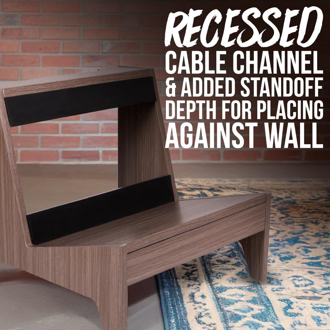 We love metal at Gator Cases – both the headbanging and physical types. While our metal stands are great for the stage and studio, they don’t always blend into their environment. Sometimes you need something more elegant and adaptable to the overall vibe of your living room or studio furniture, which is exactly what the Elite Guitar Amp Stands by Gator Frameworks provide – simplicity with an aesthetic to match any home or studio décor. The Elite Amp Stands are available in both small and large sizes to satisfy every player, from compact combo amp enthusiast to the “Whoops, I didn’t know two 12’s could knock the pictures off the wall” player. The objective of these angled stands is simple – lift your combo amp off the ground while aiming it at your ears to know how your tone will truly sound on recordings or at the club. We’ve also built in some extra standoff distance and cable passthrough clearance for placing your amp snug against the wall to maximize floor space!