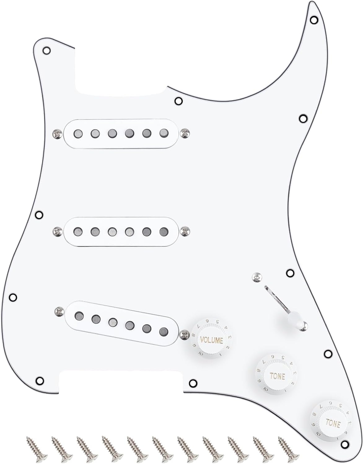 Compatibility: Fits USA Fender Performer, Special, Highway, Standard, Professional I, Professional II, Professional Classic, Deluxe, Elite, Ultra, Ultra Luxe & Mexican Fender Standard, Player, Player II, Player II Modified, Player Plus, Contemporary, Modern Player, Deluxe SSS Strat guitars with a standard 11-hole layout. Occasionally, some holes might need to be redrilled for a perfect fit. The back is equipped with EM shielding aluminum foil for effective electronic insulation