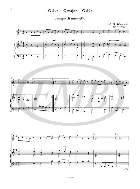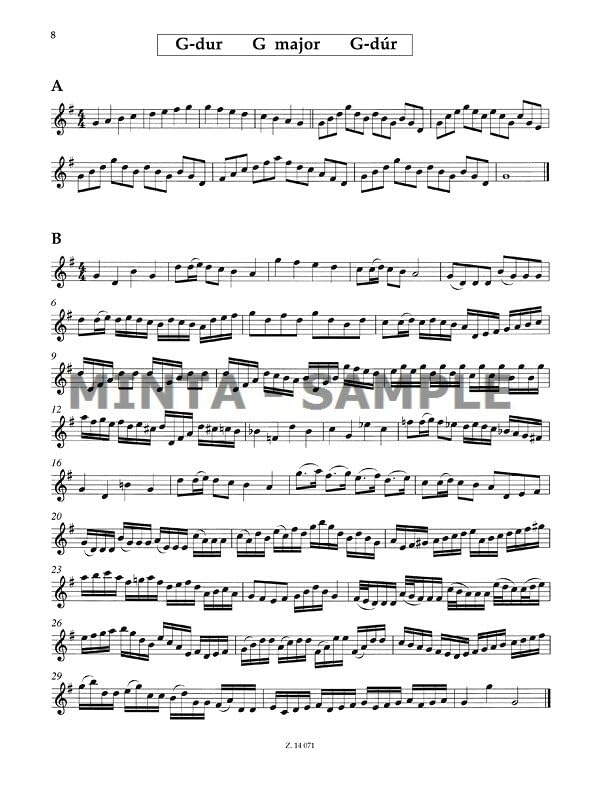 Gábor Kállay compiled for the second\- and third\-year flute students an original and extremely useful volume, in which one scale and chord breaking exercise each of almost all of the most frequent scales of the Baroque era, an original study and one (or two) Baroque suite or sonata movements are included with piano accompaniment. The selection focuses not only on skills to be acquired in the various keys but on the most varied musical problems (rhythm formulas, dynamics and articulation, etc.) as well. The music is accompanied by the piano accompaniment of the Baroque pieces. Read more