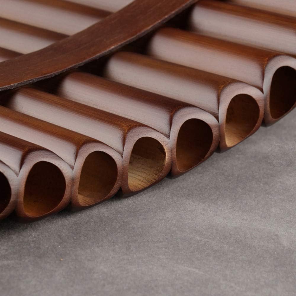 It is one kind of Chinese traditional music instrument. It is easy to learn and is suitable for children and adults. Pan flute is a Chinese traditional musical instrument which is combined with several pipes of the same material by using bundling, bonding, or frame fixed to integrate them together. In the internal tube is blocked with beeswax or cork. When playing, airflow goes over the top and impacts the other side to shake the inner tube wall, and then make music. Due to beeswax and cork’s different position, the periods of airflow vibration in the tube can be different, so the different vibration frequency of airflow makes different tones.It is easy to learn and is suitable for children and adults.Material: Bitter Bamboo over 4 years; Color: brown, as pictures show; Tone(Key): C; Package: Strict protection pan flute x 1, leather black bag x 1