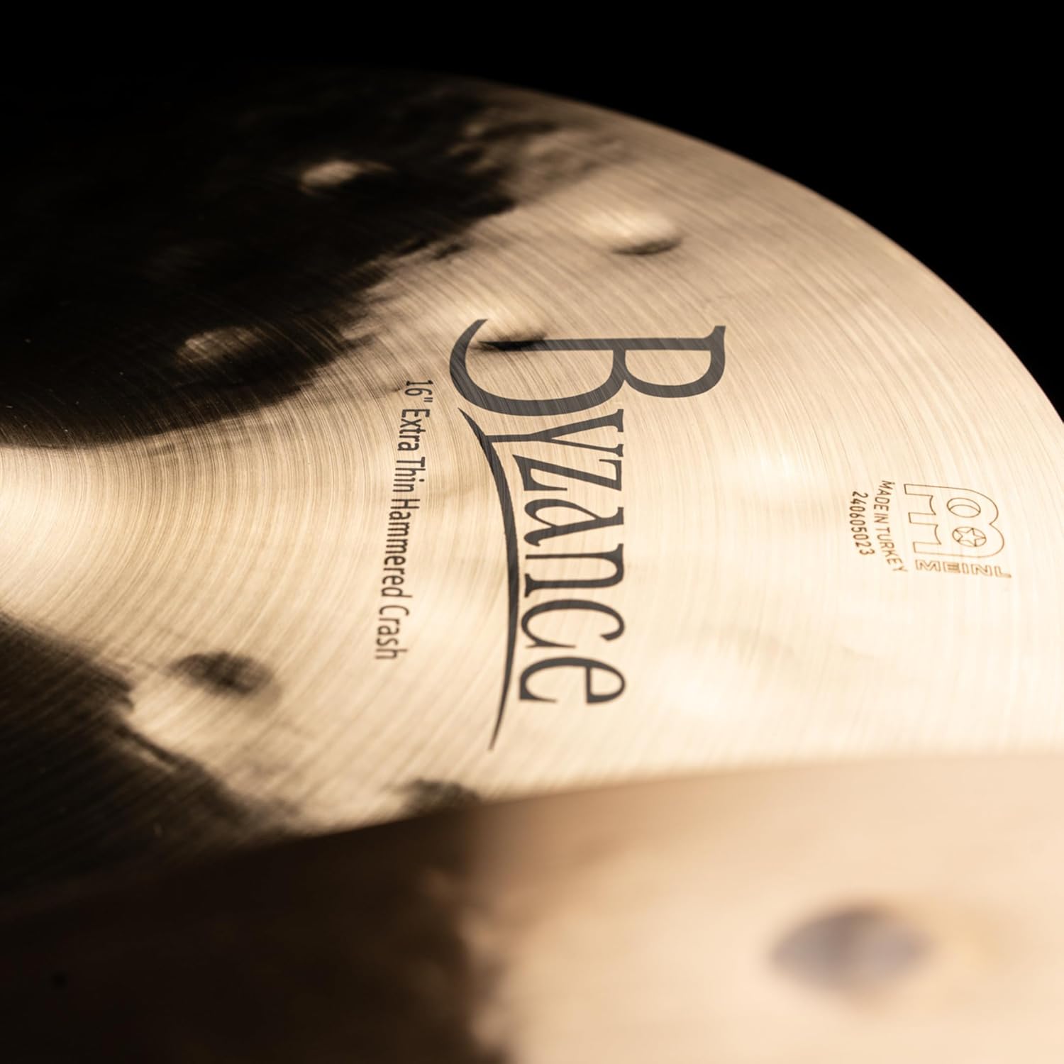 The Meinl Byzance Extra Thin Hammered Crash delivers explosive sound with effortless control. Hand hammered in Turkey from cast B20 bronze, it offers a warm, dark tone and fast, buttery feel. Extra deep hammering adds complex, trashy sound. Its thin weight and dynamic response are perfect for delicate accents or bold crashes. Elevate your setup with this handcrafted masterpiece.
