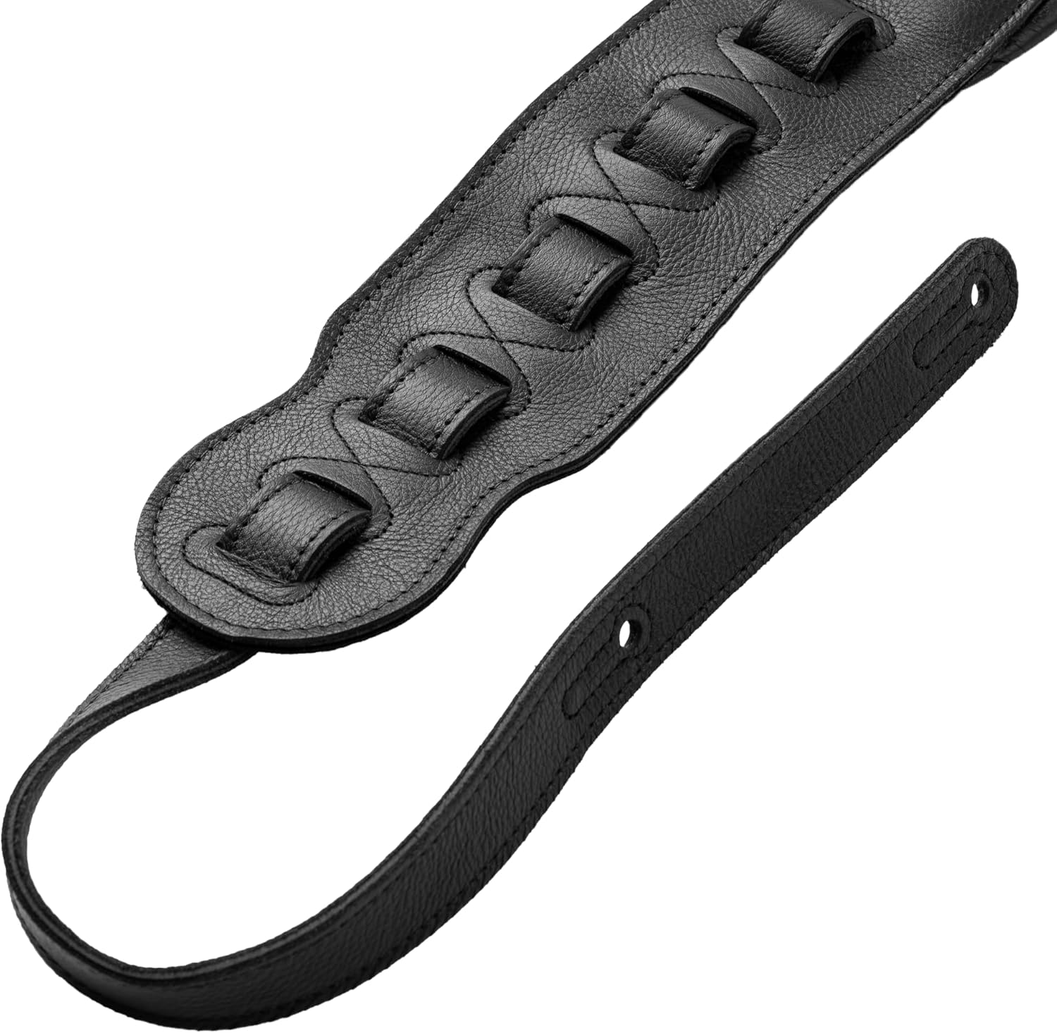 Levy’s 4 1/2” Signature Series Black Extra Long Garment Leather Padded Guitar & Bass Strap is simple, elegant and hand-crafted to last for generations. The extra width makes this strap ideally suited for bass and heavy guitars with padding that provides excellent support and superior comfort for those extra-long gigs. It’s crafted from the finest hand-picked, premium genuine leather for uncompromising comfort and durability. The back of the strap is finished with smooth garment leather which provides freedom of motion, perfect for the musician who prefers a more fluid feel when playing. The ladder style, feed-thru adjustment adjusts from 37” to 63” in length for the perfect playing height and wrist position. The strap features reinforced stitching around the outside edges to prevent stretching and extend the life of the product.