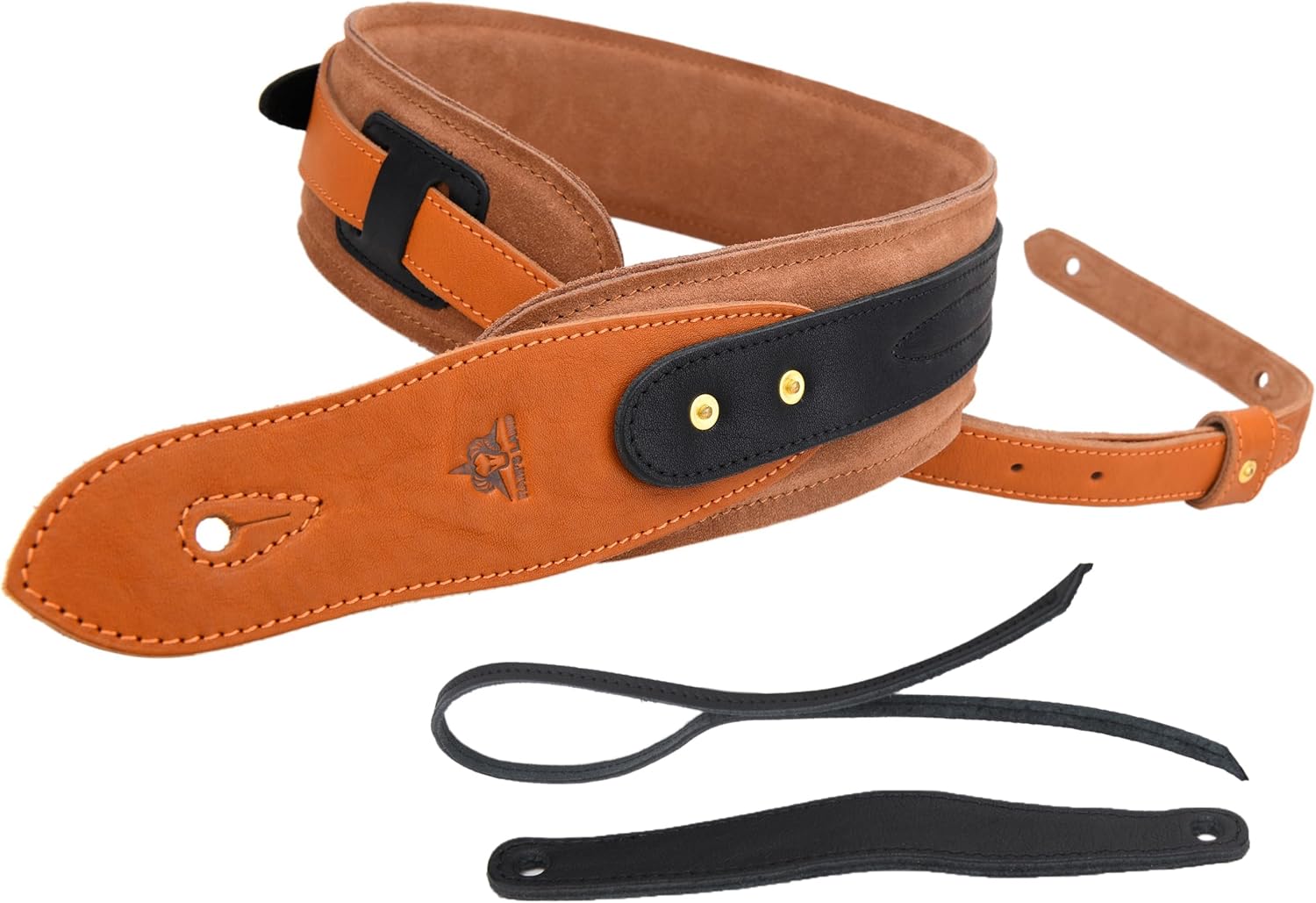 Full Grain Leather Guitar Straps 3 inch Padded for Electric, Acoustic, and Bass Guitar