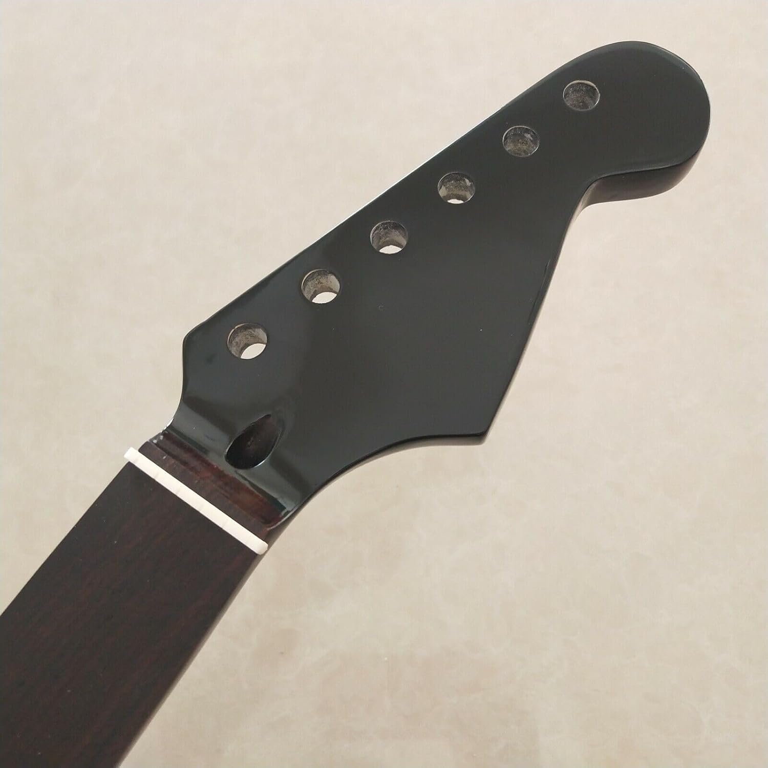 Introducing the black fretless electric guitar neck, the dimensions are as follows, heel width: 55.5--56.5 mm, tuner hole: 10 mm, nut width: 42 mm. Carefully crafted to deliver a superior music experience. The neck measures 25.5 inches and features a smooth rosewood fretboard and 22 frets, making it the perfect replacement for an electric guitar. Our black fretless electric guitar necks are made from high materials to ensure durability. The smooth black finish adds a touch of and gives your guitar a look. This neck is crafted to provide a comfortable playing experience and easy movement across the fretboard. This neck has 22 frets, giving you a variety of notes to explore and experiment with. Whether you play jazz, blues, or rock, this neck gives you the versatility you need to create your own sound. The fretless allows for smooth, continuous glide between notes, adding a special touch to your music. Designed as a replacement part, this guitar neck is compatible with a variety of electric guitar models, making it an excellent choice for professional musicians and amateurs alike. Its 25.5-inch size ensures it will fit most standard electric guitars for easy installation. Hassle-free setup. Rosewood fretboards are known for their warm tone and smooth feel, which enhance the overall sound of your guitar. It provides a comfortable gaming surface so you can play for hours without feeling uncomfortable. Fret markers on the side of the neck aid navigation, making it easier to find the fretboard. Upgrade your guitar with a black fretless electric guitar neck and experience levels of playability and tone. High- materials, versatile and comfortable feel make it a must-have for musicians of all levels. Whether you are a beginner or an experienced player, this neck will take your playing to the next level. Invest in and enhance your musical journey with a black fretless electric guitar neck.
