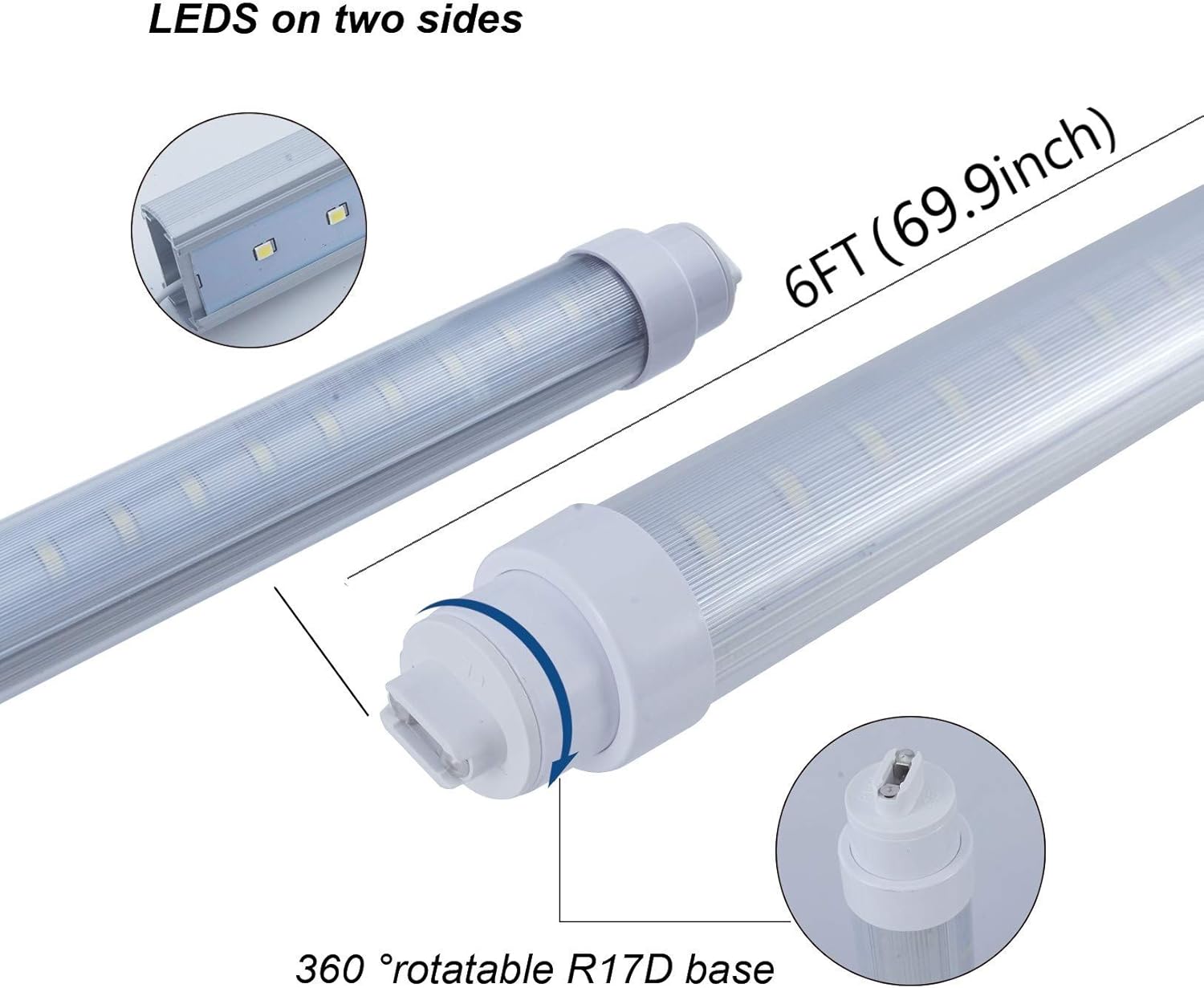 Midwestern 6 Pack T10 6FT 48W Led Tube Light Double Sided 360° Rotatable R17D Base Double Rows Led Ballast Bypass 6 Foot Advertisement Sign Lighting 6000k Cool White Striped Cover 100-277V