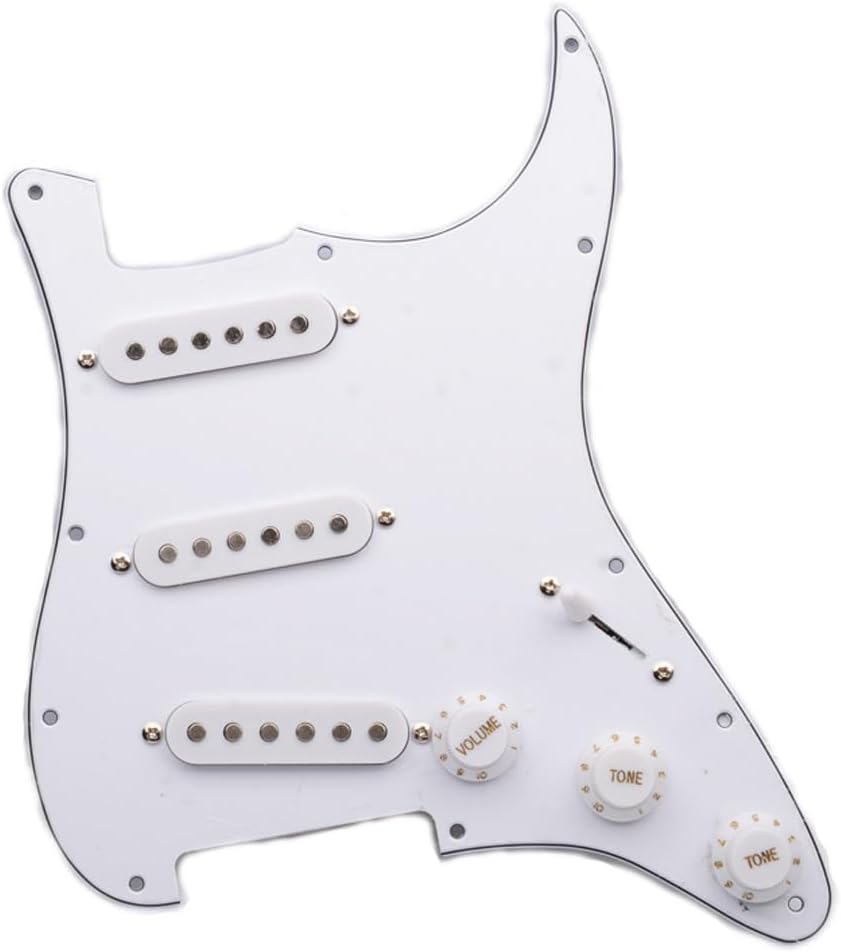 OZILO Electric Guitar SSS Prewired Pickguard With Alnico 5 Pickups 5-way Switch Multi-tone Potentiometer Fit Strat Electric Guitars Red Tortoise .Complete pickup and controls were pre-wired and attached to a scratch guard, with good and clean pots; it's a great way to save money and speed the completion of your solidbody guitar, only need to take a few minutes to wire to your output jack and grounding to your guitar bridgeThe pickguard fits Mexican/American Standard Fender Strats, not other types of strats.