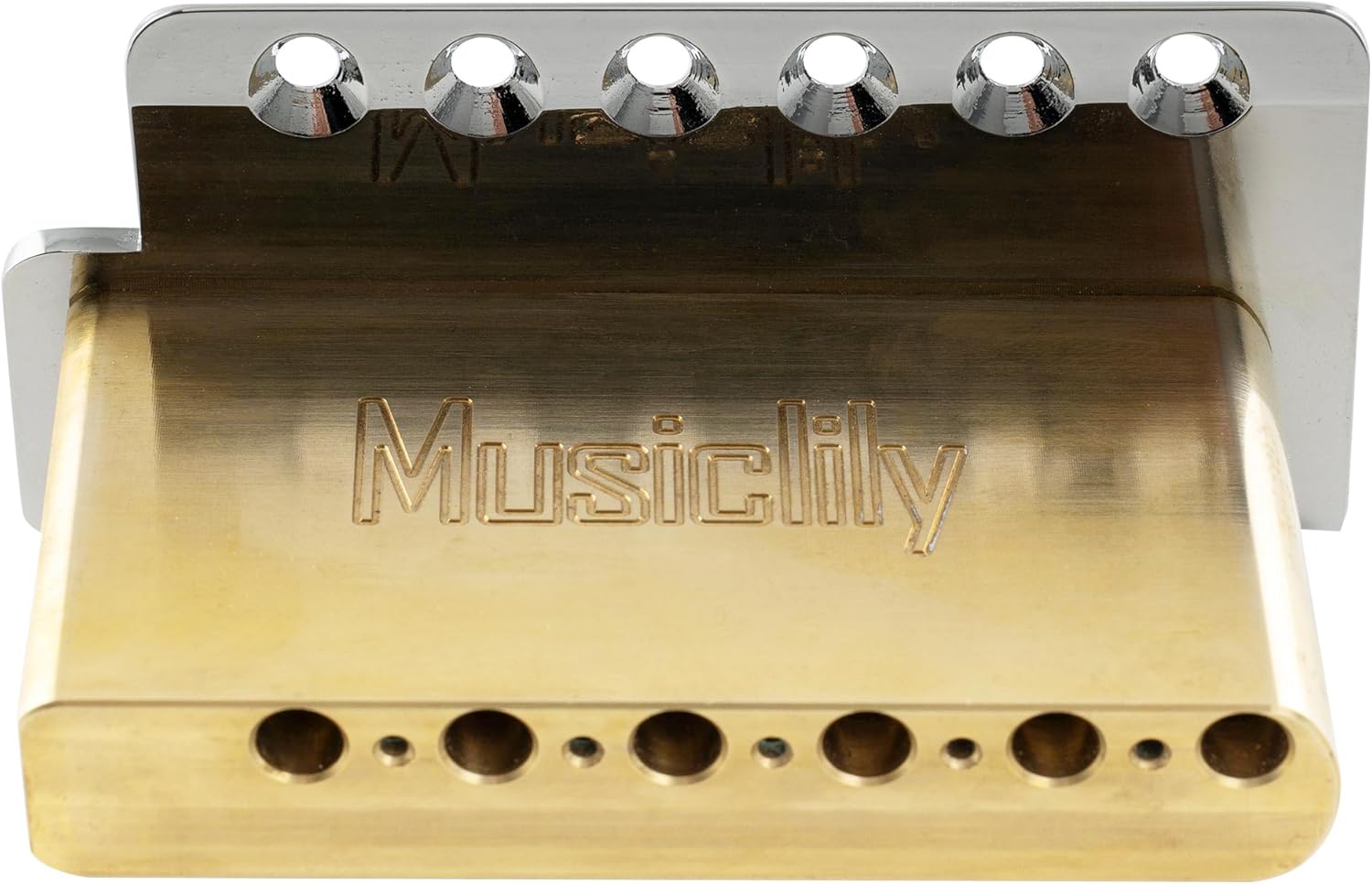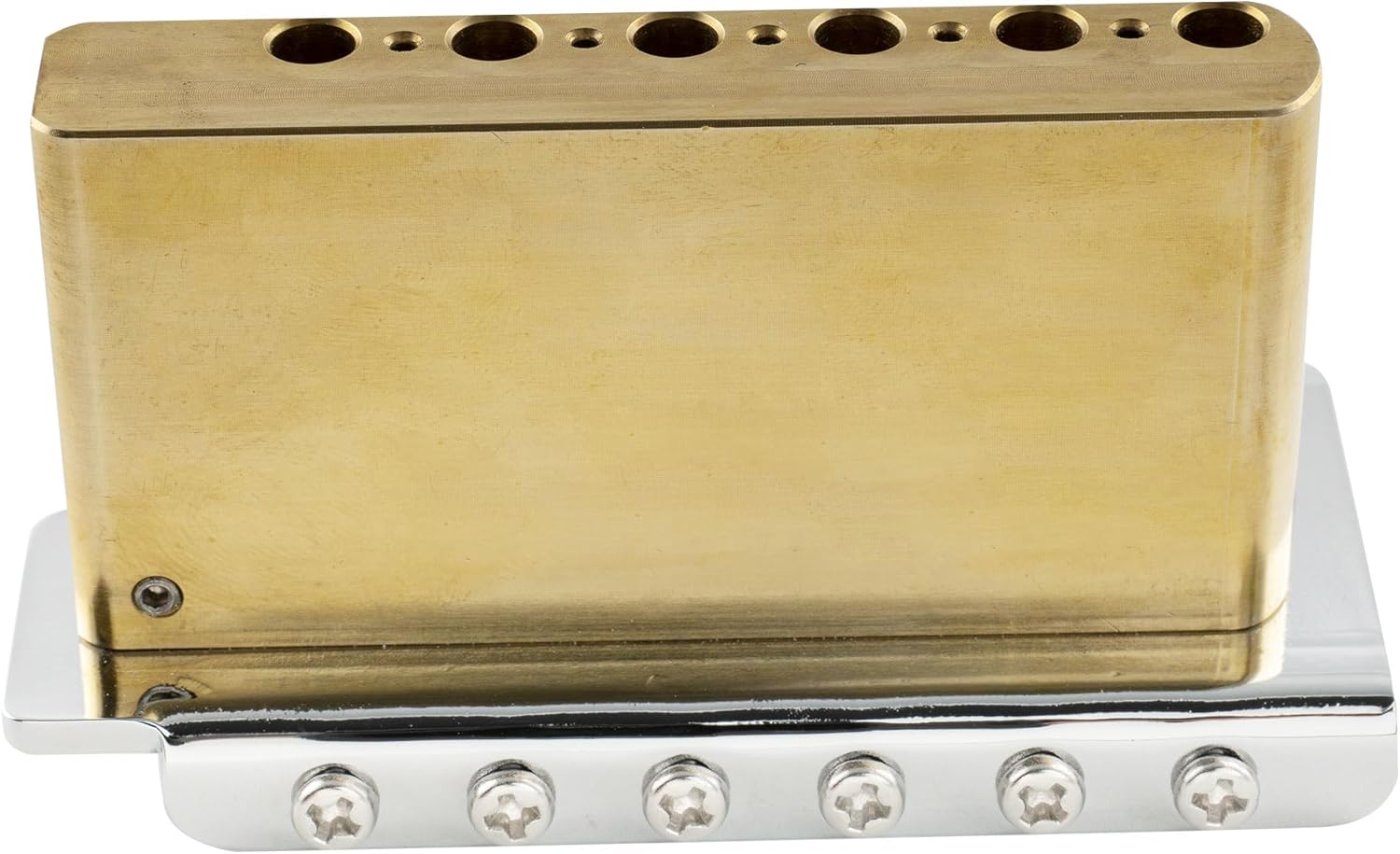 Musiclily Ultra 52.5mm (2-1/16 inch) Standard 6-Screw ST Tremolo Bridge with Modern Brass Saddles 36mm Solid Brass Block Push-In Arm for Strat Style Electric Guitar, Chrome.