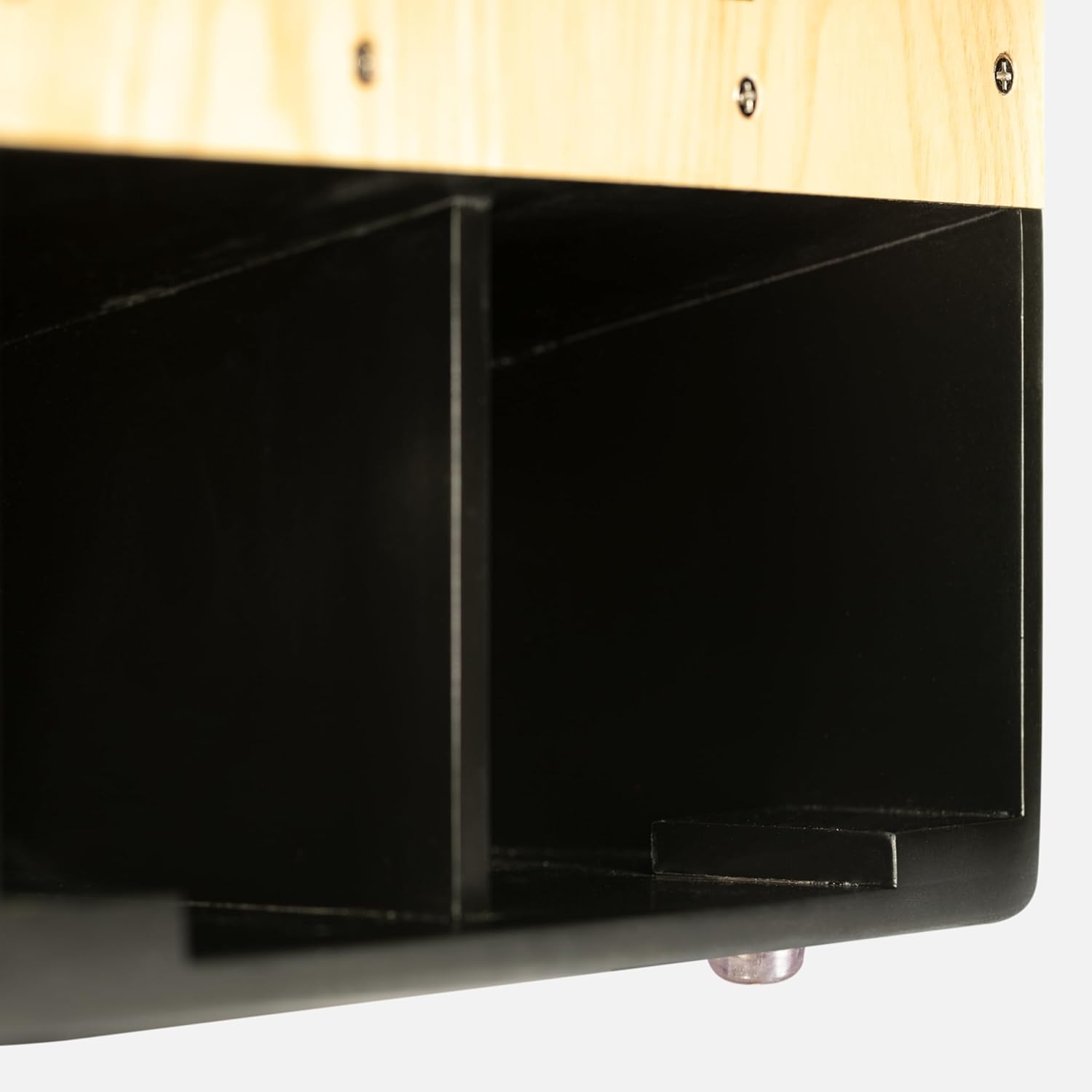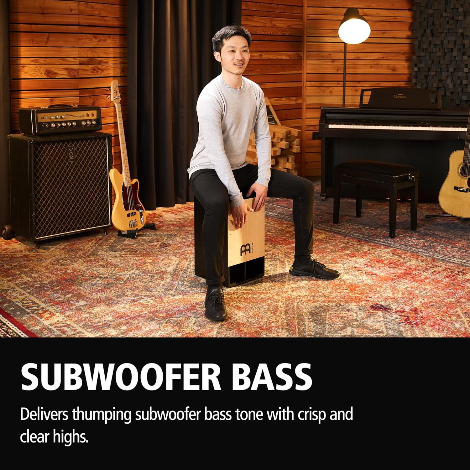 The MEINL Subwoofer Cajon features a forward projecting sound port in place of the traditional rear facing style and an internal reflex channel. This results in an enhanced bass note projection, particularly desirable for live and unplugged situations. Fixed internal snare wires deliver a crisp and cutting sound that enhances corner slaps and adds a touch of contrast to bass notes. This Bass Cajon is designed to project immensely deep bass tones that swell with harder playing and provide slight punches behind soft notes, responding much like a kick drum. The internal reflex channel and American White Ash frontplate together deliver a beautiful, slightly sustained bass tone that creates a musical punch behind your playing.
