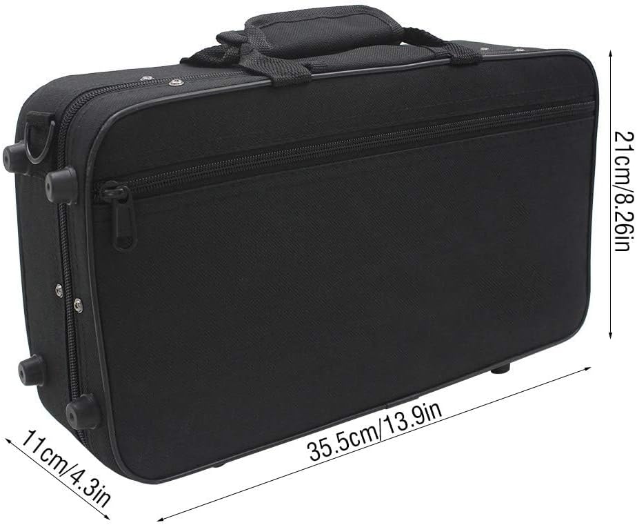 Premium Protection Portability: The oxford cloth clarinet bag features thick foam padded clarinet case interiors to protect your instrument from bumps and scratches. Its lightweight portable instrument case design makes it easy to carry, while the clarinet storage bag compartment keeps reeds and accessories organized. The adjustable strap ensures a comfortable fit for musicians on the goSecure Spacious Storage: This clarinet holder bag includes multiple pockets, offering ample space for sheet music and clarinet performance accessories. The sturdy black clarinet case exterior protects against daily wear, and the clarinet gig bag design keeps your instrument snugly in place. Ideal for students and professionals alikeSpecification:Material: Oxford FabricColor: BlackSize: Approx. 35.5 x 21 x 11cm / 13.97 x 8.26 x 4.33inWeight: Approx. 522gPackage List:1 x BagClarinet is not included.Note:Please note that the new type and old type of this product will be sent randomly, and make sure you will not mind before ordering.
