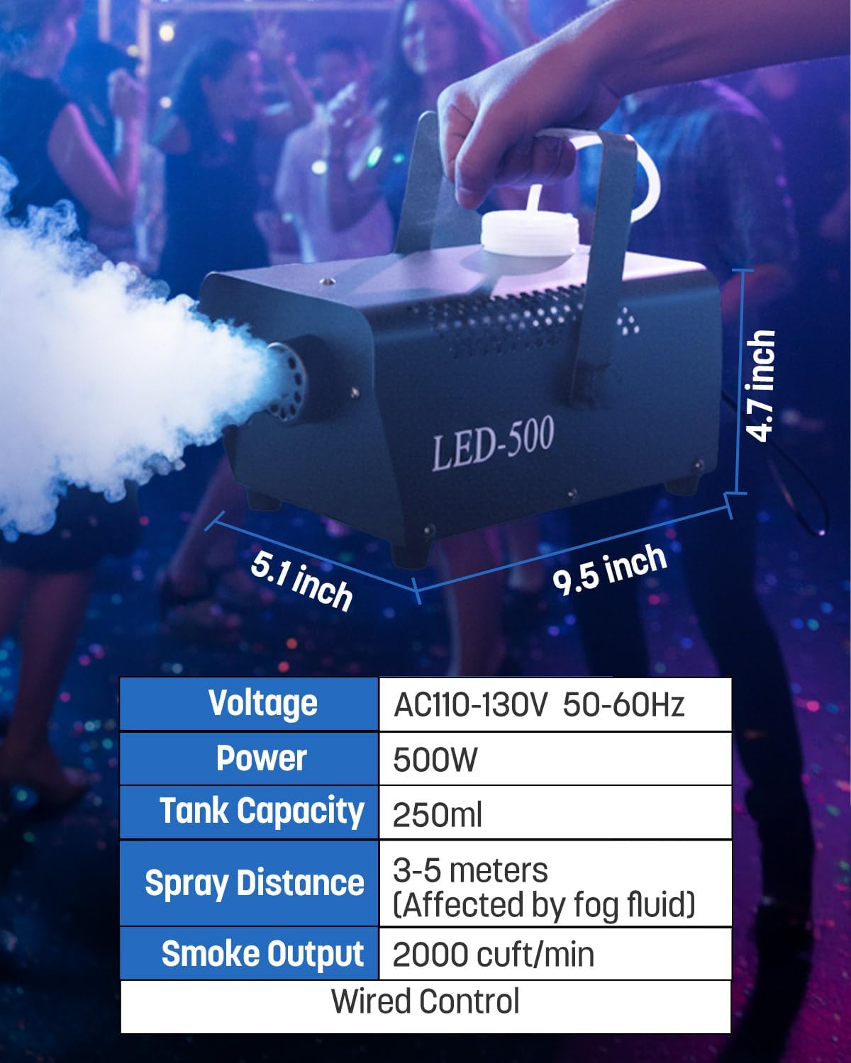 This 600W fog machine delivers up to 3000 CFM of thick fog with a 3-meter spray range, instantly transforming your space. Built-in disco ball lights and 13-color RGB LEDs create swirling effects, making it the perfect Halloween smoke machine fog for haunted houses, weddings, DJ sets, and parties.Switch between auto spray mode and wireless remote control for flexible use. Whether indoors or outdoors, this fog machine with lights ensures consistent performance for karaoke nights, Halloween displays, or stage effects.Crafted with durable metal housing and dual handles, the smoke machine Halloween is compact, portable, and safe. With quick warm-up, energy-saving design, and overheat protection, it’s your go-to choice for unforgettable events—whether as DJ accessories, stage fog machines & accessories, or maquina de humo para fiestas.