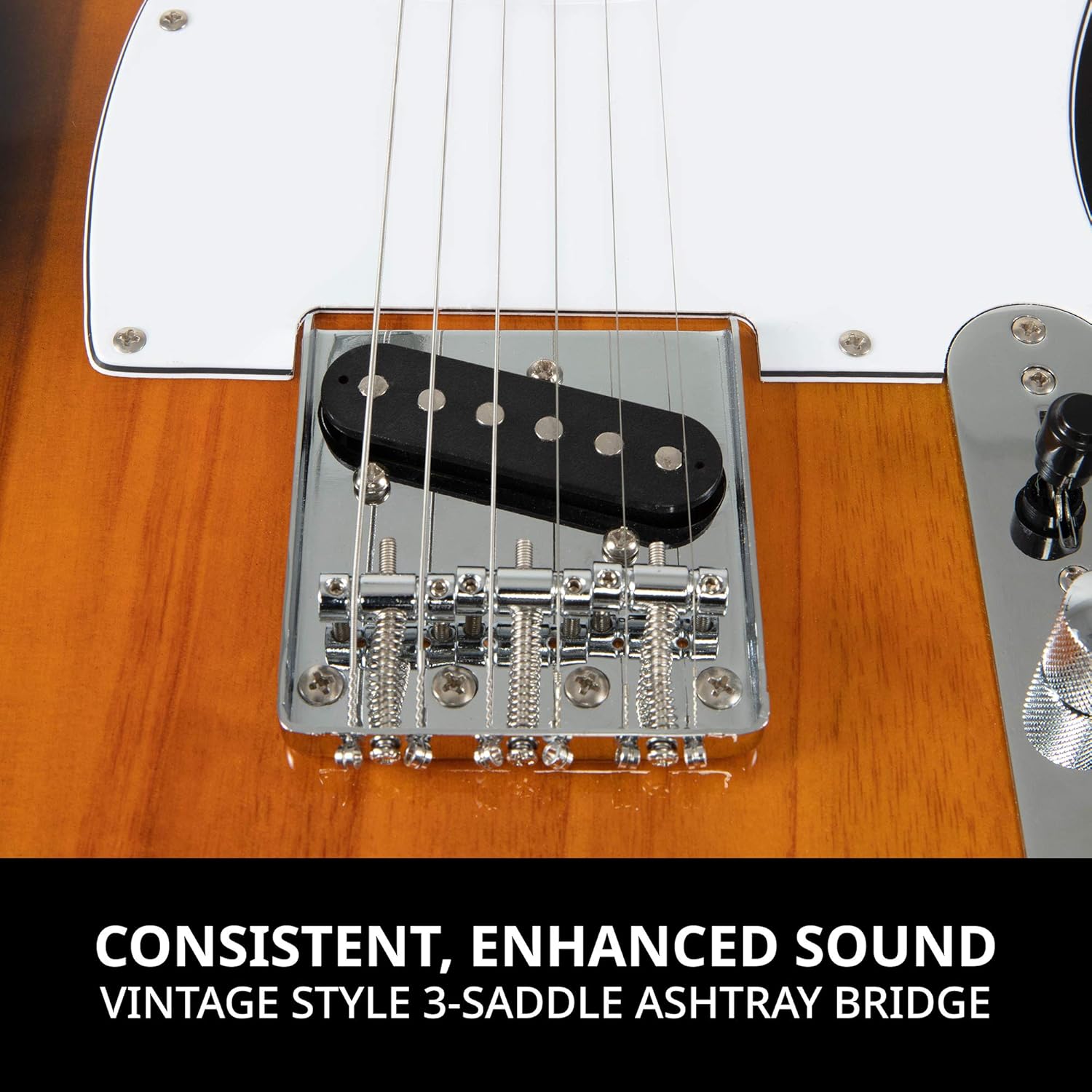 All the twang of the legendary Vintage Electric GuitarTransport to a bygone era of rock royalty with this stunning 39” Guitar from LyxPro.Featuring all the traditional qualities of the beloved Original style, this popular model is beloved by beginner, intermediate, and advanced players the world over. With its sturdy Paulownia wood body, comfortable C-shaped maple neck, vintage-style bridge, and other throwback accents, this impressive instrument melds classic style with unsurpassed LyxPro sound quality.A handcrafted fretboard makes picking a pleasure, while an advanced 3-way switch, tone, and volume knobs allow for seamless intonation and audio control.Just plug in, grab a pick [two included]—and discover the LyxPro difference! Add a 39” Electric Guitar to your cart today.What You Get- 1 x 39” Electric Guitar- 2 x Guitar Picks- User Guide Specs & Details- Body: single cut, Paulownia- Neck: C-shape, maple- Tuners: sealed-gear pegs- Frets: 22- Bridge: 3-saddle, ashtray- Pickup: 3-way selector- AUX port: yesBundle Items Include:LyxPro 39" Electric Guitar TL Series - SunburstLyxPro Electric Guitar Amp 40 Watt Amplifier - Black