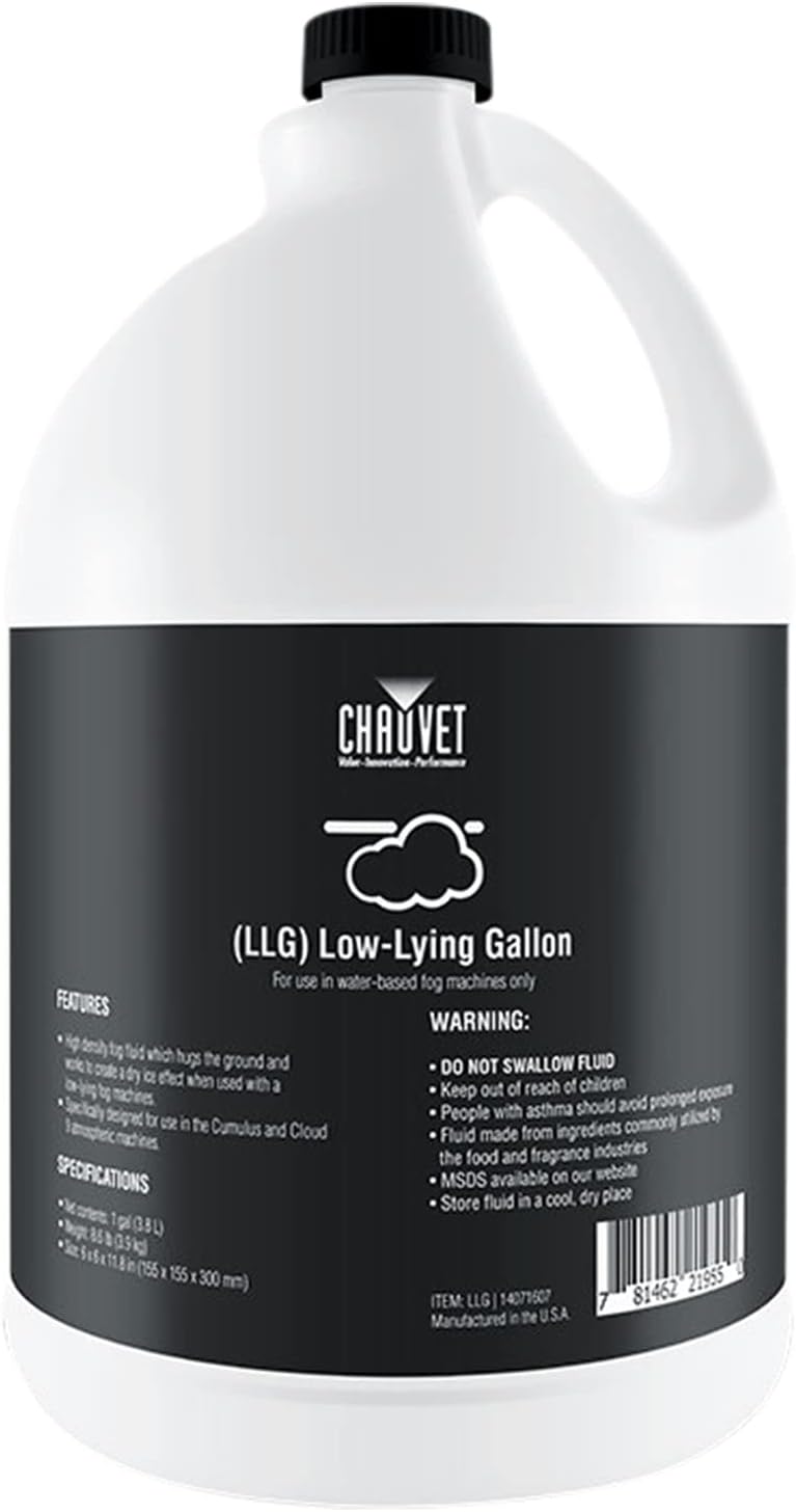 The event industry’s favorite low-lying fog machine is now smaller, lighter, and easier to control than ever. Cumulus HP creates thick clouds that hug the floor creating a stunning special effect, without the need for dry ice. The onboard ultrasonic atomizer converts distiller water into a thin mist. The unit’s fast heat up time allows for quick operation and fog on demand. Its rugged plastic housing acts as a case making transportation a breeze. Cumulus HP can be controlled with the built-in digital display, DMX, or included wireless remote. LLG is a water-based formula that produces a thick cloud of low-lying fog that hugs the ground. Specially crafted for use in Cumulus, LLG will help create continuous floor-hugging clouds that leave no residue. LLG is non-toxic, non-flammable, and unscented.