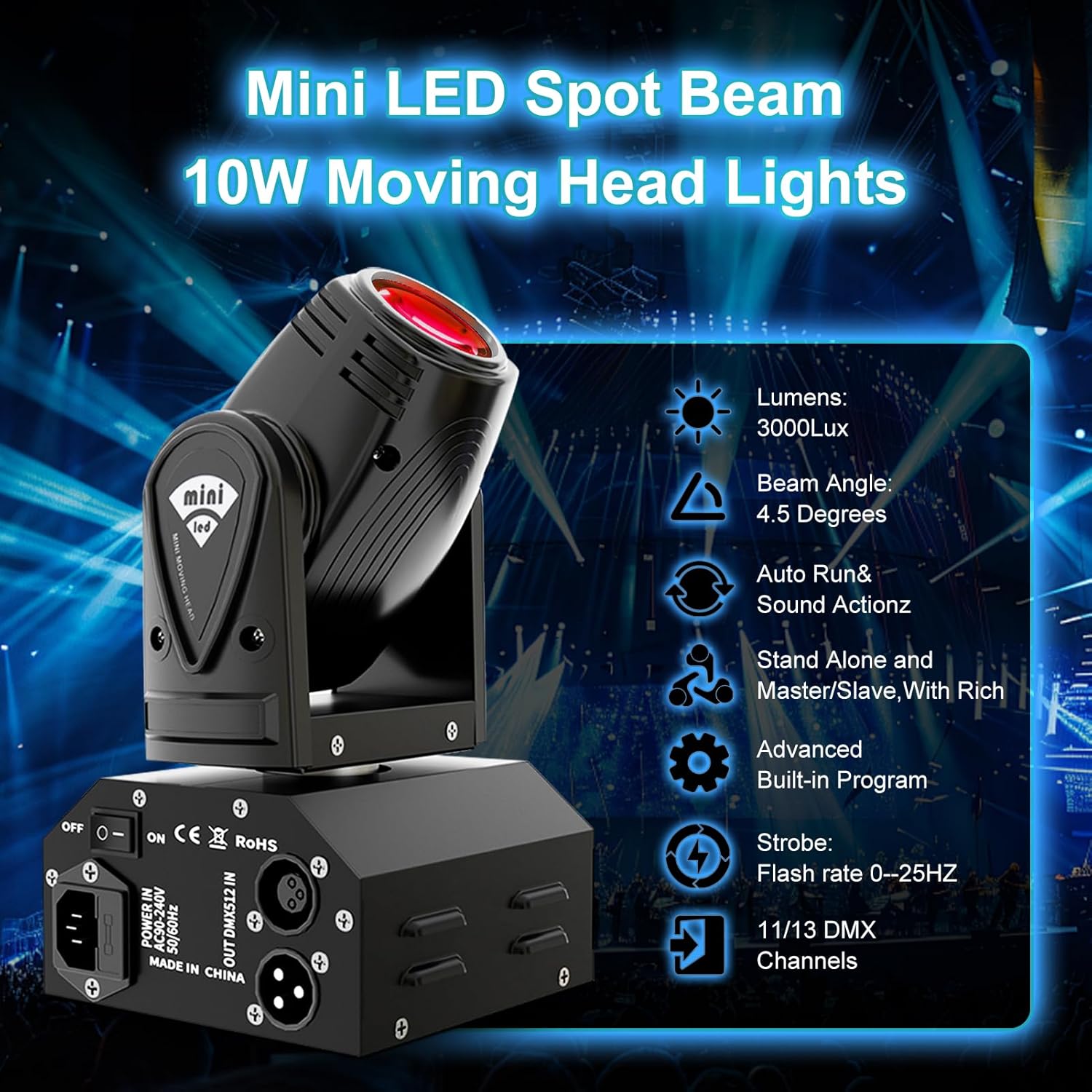 | Included Components | 2x Moving Head Light, 2x DMX Cables, 2X Power Cord Plug, 1x User Manual, 2x Bracket. |