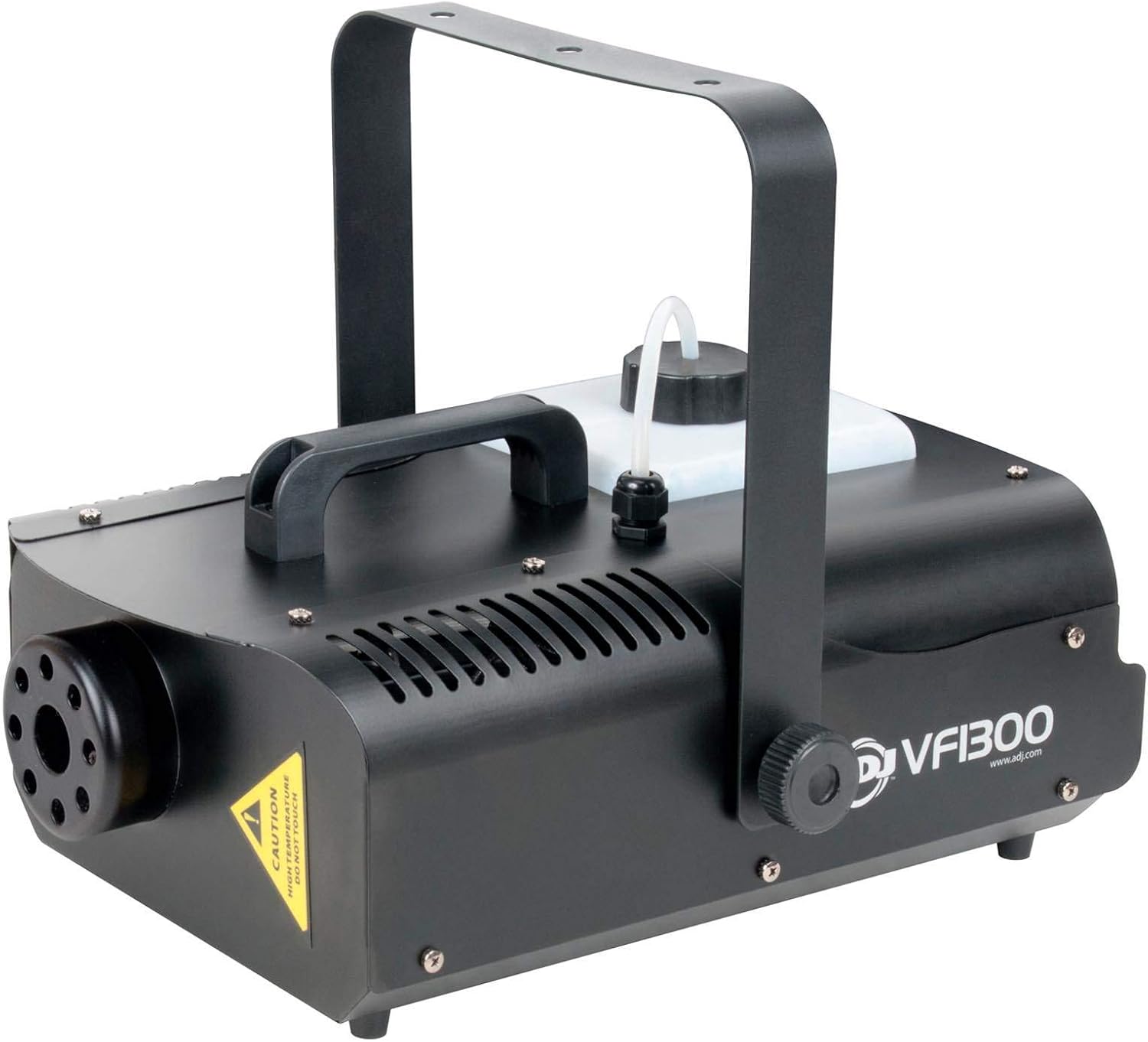 The ADJ VF1300 is a 1300W mobile Fog Machine that is great for mobile entertainers, medium size nightclub and bars, bowling centers and special effects productions that want to add atmosphere to their events, plus it allows people to see the beams from the lighting fixtures. The VF1300 is equipped with a high efficiency heater that quickly burns through the fog liquid. It comes with a 2.3 liter external fog fluid tank, has a fog fluid level indicator, comes with a wired and a wireless remote control, and uses water bases fog fluid. Advanced features include: Electronic Thermo Sensing (ETS) for optimum heating levels, and a low fog fluid shut off sensor to protect the pump. A optional wired timer remote is available separately.