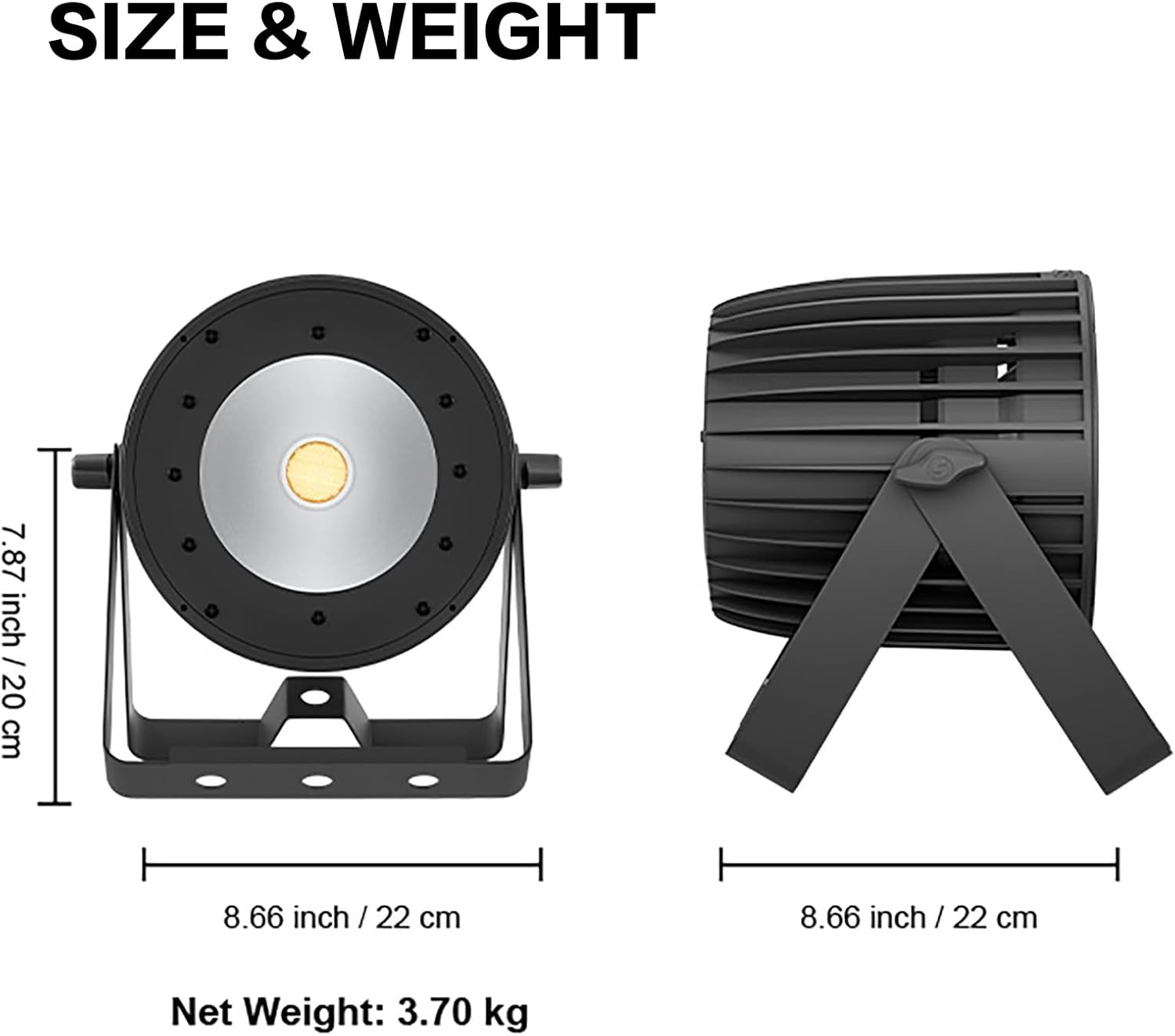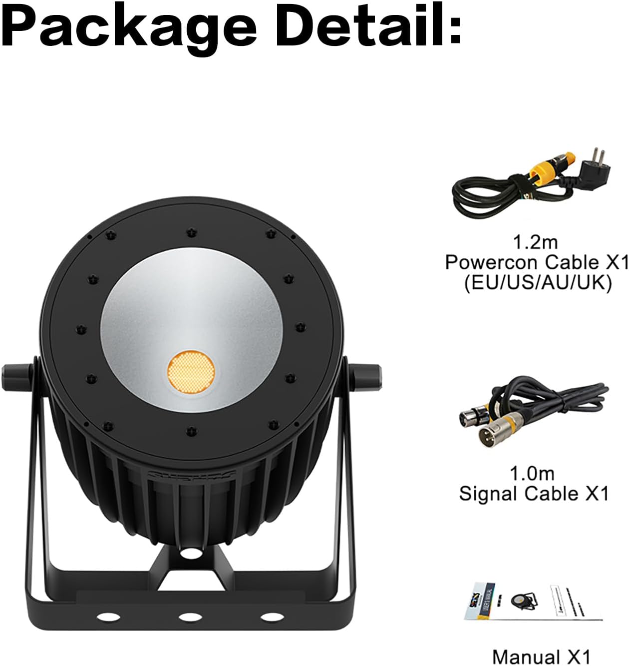 | Light Source Special Features | Non-glare, beam angle up to 85°, shuttle flash rate 0-10Hz, 0-100% dimmer, sound-activated, DMX512 mode, 6/10 DMX channels |