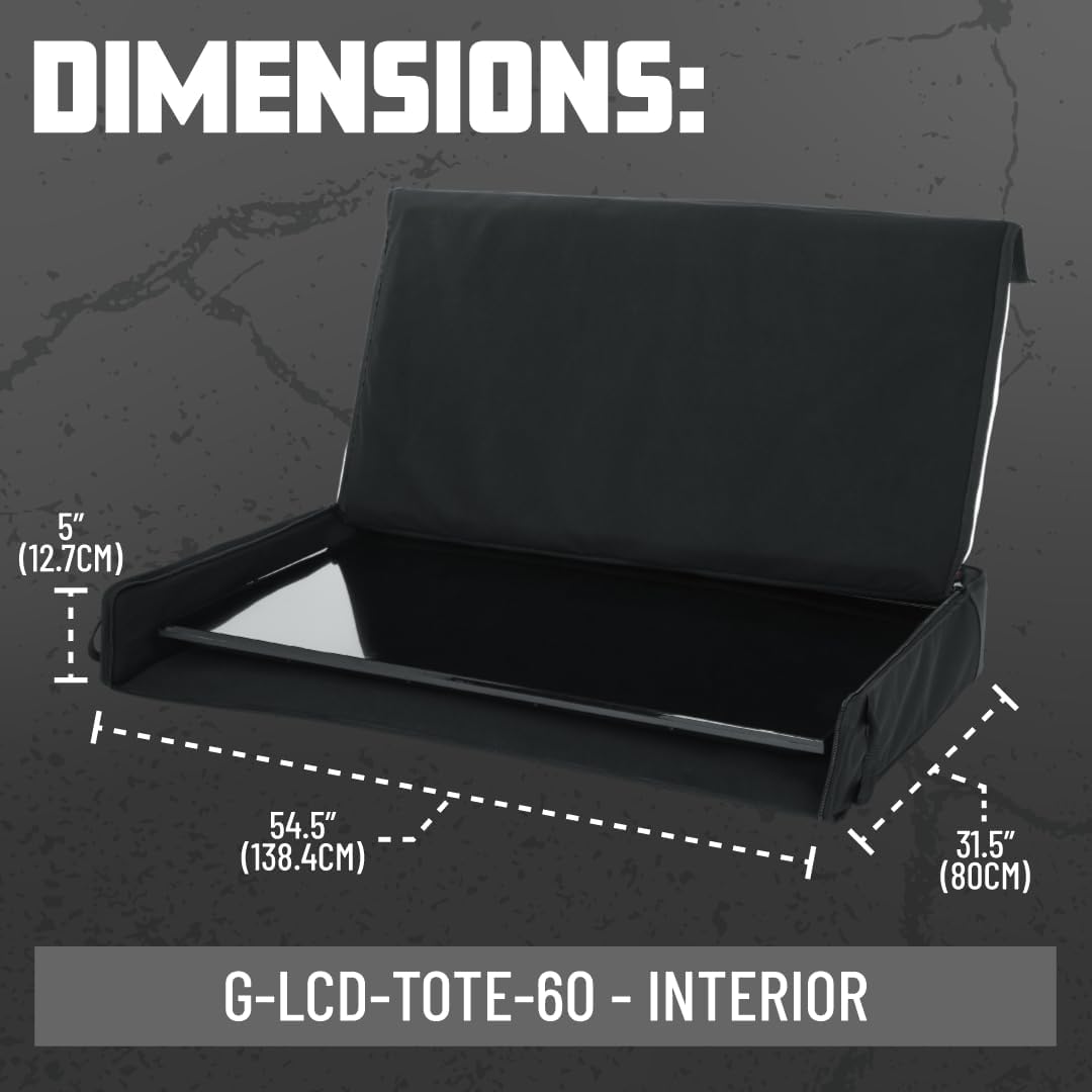 Gator’s G-LCD-TOTE60 is a heavy-duty Nylon bag with a soft Tricot lined interior specifically designed to protect and carry 60” screens. The LCD Tote Bag features 25mm of thick PE foam padding on all sides with polyethylene reinforcement to provide additional protection for the screen. The G-LCD-TOTE60 utilizes a dual zippered design allowing you to easily load and unload the screen. You won’t get stranded without your cables and accessories with this tote bag by using the large exterior storage pocket which includes a clear vinyl window for a business card or identity information. Lastly, the G-LCD-TOTE Series provides you with durable Nylon web carry handles and an adjustable, removable padded shoulder strap for a comfortable, secure solution. Interior Dimensions: 54.5”x31.5”x5”