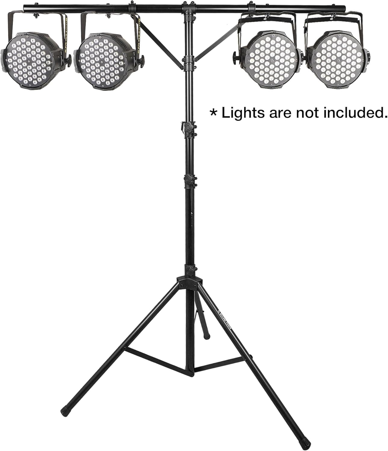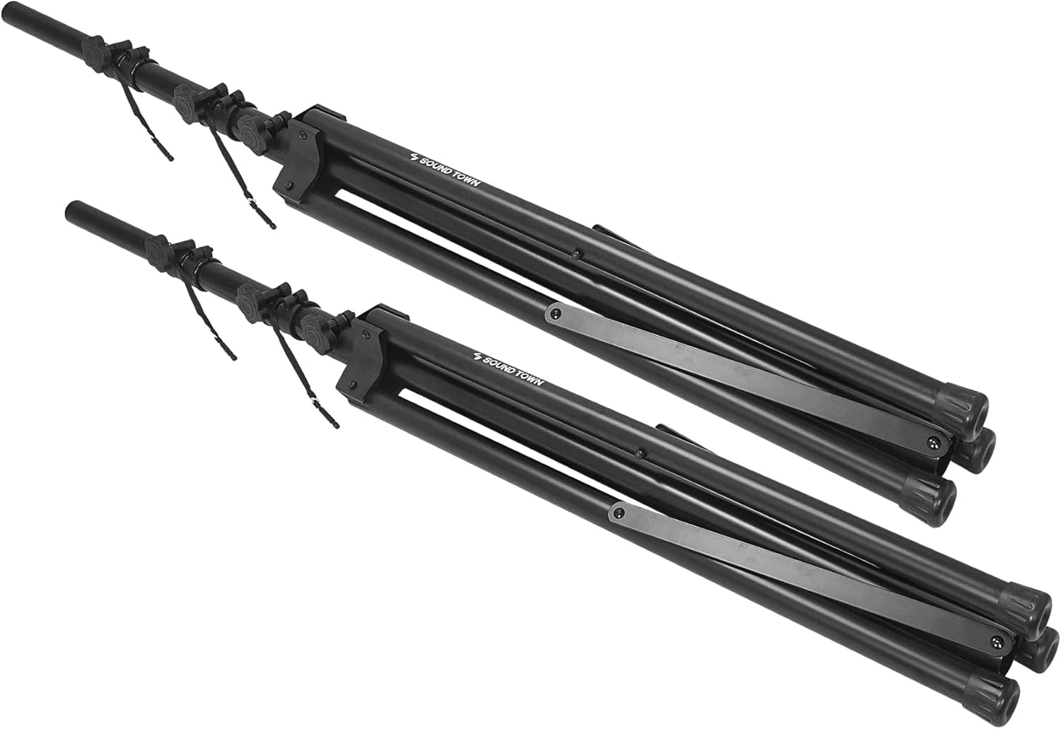 Sound Town 2-Pack DJ Lighting Stand, Height Adjustable, 12 ft Tall, with T-Bar and Tripod Base (STLS-T12-PAIR)The Sound Town STLS-T12-PAIR lighting stands are a versatile and portable solution for your lighting needs. It features 2 STLS-T12 lighting stands, each with a T-bar with a tripod base, providing stable support for various lighting setups. These stands are made from sturdy steel, ensuring durability and reliability. The T-bar extends 5 feet and includes hanging bolts, capable of holding up to four par cans.Ease of use is a key aspect of the STLS-T12. It boasts a collapsible design, complete with safety pins, making setup and takedown quick and hassle-free. This feature, coupled with a convenient carry bag, makes the stand ideal for on-the-go use. Adjustability is another significant advantage. The stand features three telescoping shafts with tension locks, allowing you to extend its height up to 12 feet. This adaptability makes it suitable for various event types and venues.The STLS-T12 is designed to handle significant weight. Each stand supports a maximum load of 110 lbs, evenly distributed, providing a secure and reliable base for your lighting equipment. Overall, the Sound Town STLS-T12-PAIR combines portability, ease of setup, adjustability, and a solid build, making it an excellent choice for lighting professionals and enthusiasts alike.