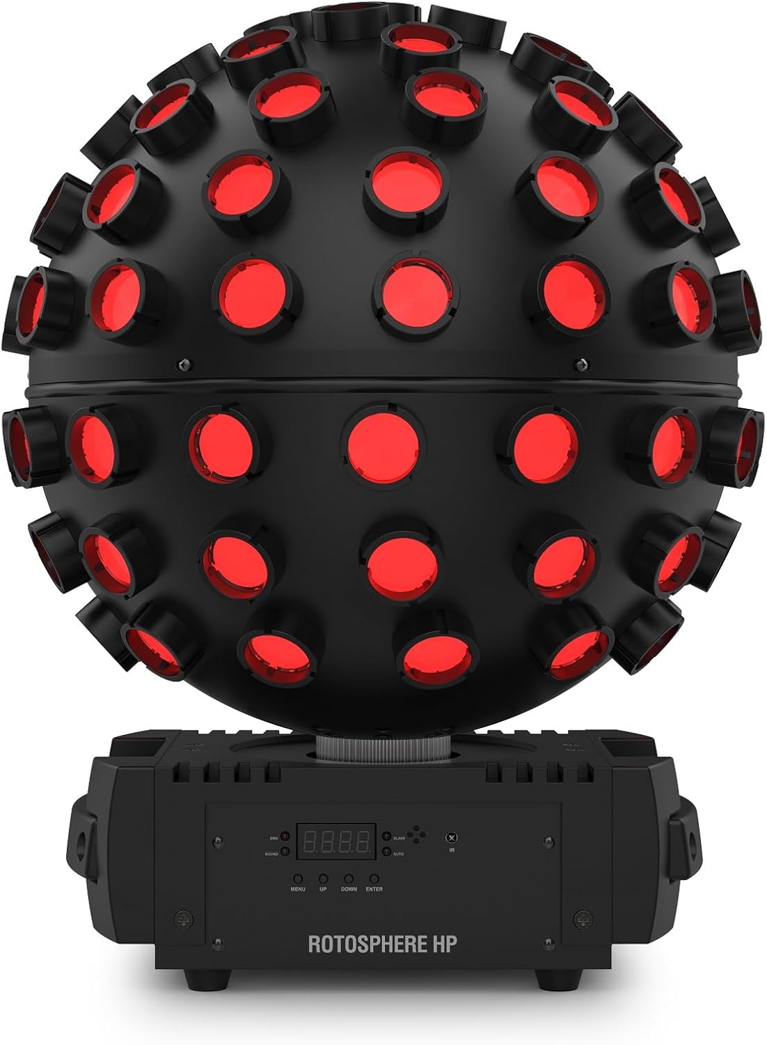 The Rotosphere HP is a high-powered rotating mirror ball simulator that creates stunning lighting effects for parties, weddings, and stage productions. Featuring dual quad-color LEDs (RGBW & CMYO), this fixture produces unique color combinations with 360 degree coverage.Designed for effortless customization, the digital display allows you to manually set colors and rotation speeds without a controller. The adjustable speed range (2 - 19 RPM) makes it perfect for both slow, romantic settings and high-energy environments.With multiple control options, including DMX (3, 12, or 28 channels), standalone mode, and the IRC-6 remote, users can easily adjust colors, brightness, and effects wirelessly. The sound-activated and automated programs create synchronized, music-driven light shows.The versatile mounting options allow users to secure it to trusses, stands, or place it as a centerpiece, making it ideal for DJs, event planners, and club owners. Power linking saves setup time by reducing the need for extension cords.Included in this bundle, the IRC-6 remote provides wireless control for static colors, strobe effects, and speed adjustments with a range of up to 30 feet. The IRC-6 remote for Lighting is UL4200A approved.