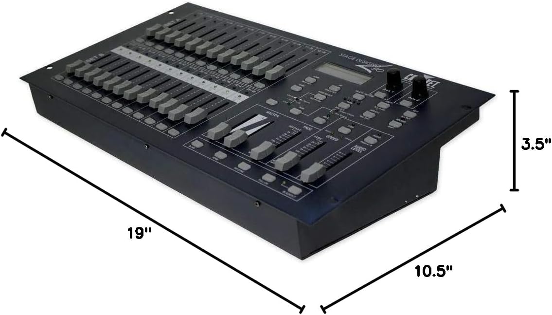 Description: The Stage Designer 50 takes the size of a 24-channel dimming console and the functionality of a 48-channel console and combines the two into one powerful dimming unit. The Stage Designer 50 has up to 8 pages with 12 scenes each and 96,000 programmable steps. The console allows the user to re-assign channels as needed and allows for MIDI input.