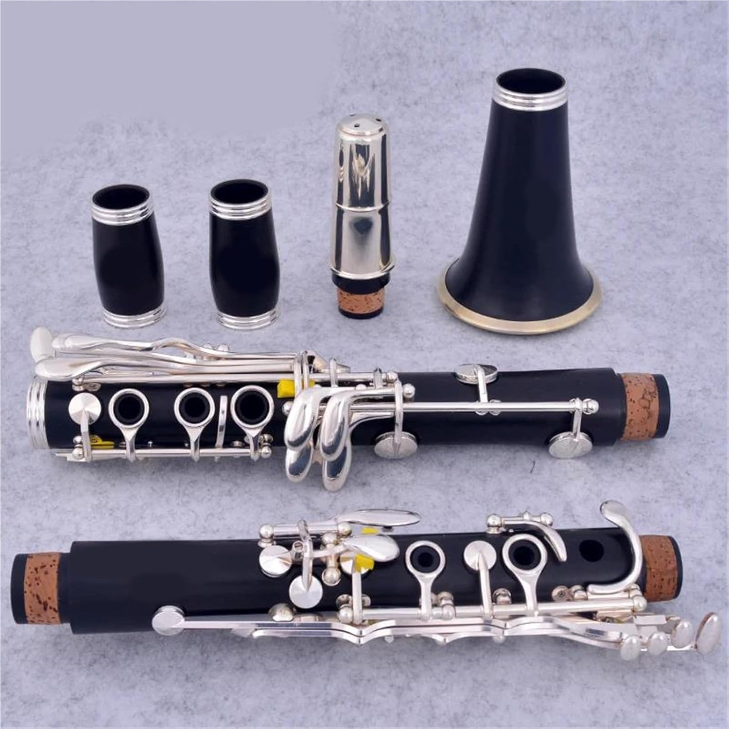 The clarinet has a robust structure and a classic appearance and sound.Tone: BBKey Material: Copper NickelNumber of Keys: 18Body Material: EbonySurface Material: Nickel SilverModel: M112Origin: Mainland ChinaCrafted from carefully selected rubberwood, it enhances sound projection and ensures accurate intonation, making it an ideal choice for beginner and intermediate clarinet players seeking professional-grade tone.