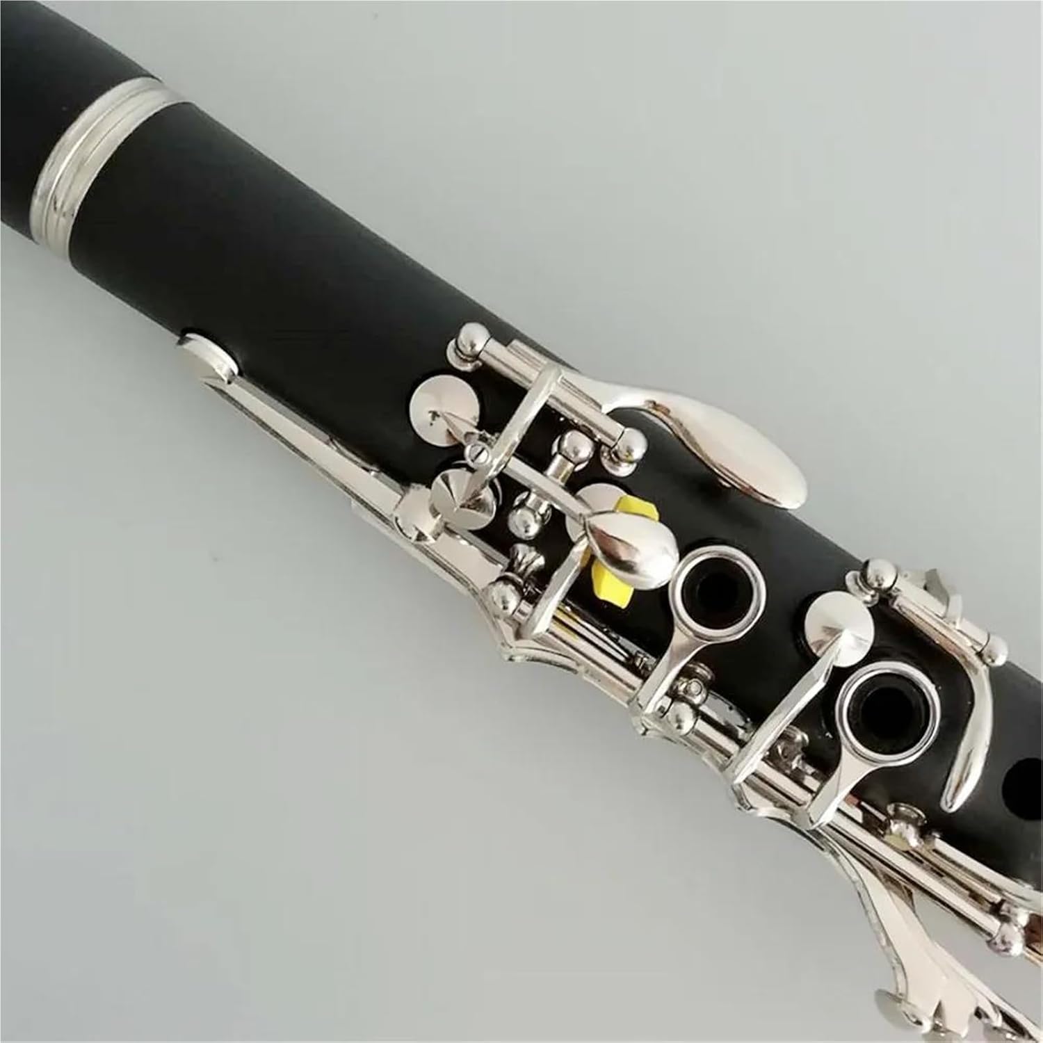The clarinet has a robust structure and a classic appearance and sound.Model: c1Surface material: nickel-platedBody material: bakeliteNumber of keys: 17Body material: copper-nickelTone: CMaterial: bakelite bodySurface: nickel-platedColor: black bodyOrigin: Mainland ChinaCrafted from carefully selected rubberwood, it enhances sound projection and ensures accurate intonation, making it an ideal choice for beginner and intermediate clarinet players seeking professional-grade tone.