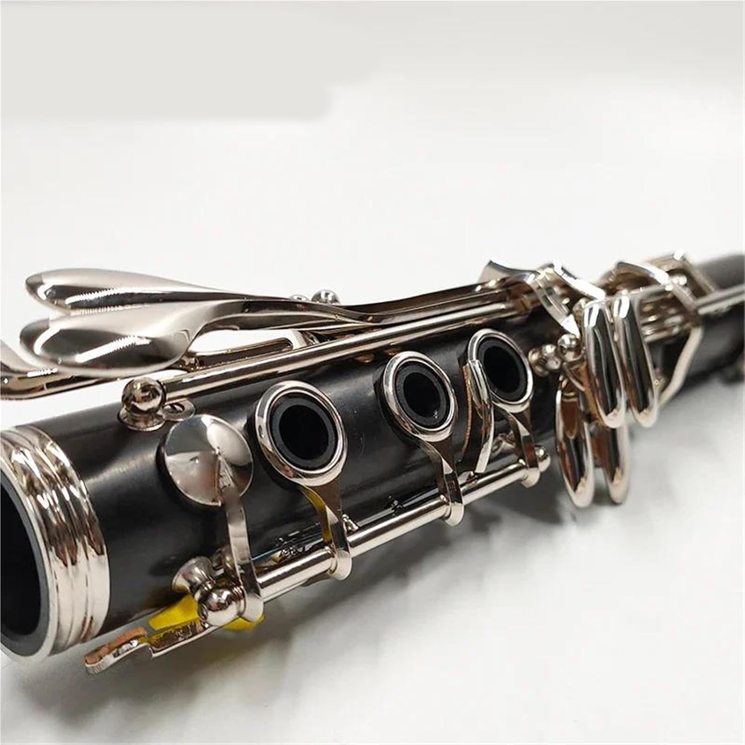 The clarinet has a robust structure and a classic appearance and sound.Tone: BBKey Material: Nickel SilverNumber of Keys: 17Body Material: EbonySurface Material: Nickel-platedModel: M110Origin: Mainland ChinaCrafted from carefully selected rubberwood, it enhances sound projection and ensures accurate intonation, making it an ideal choice for beginner and intermediate clarinet players seeking professional-grade tone.