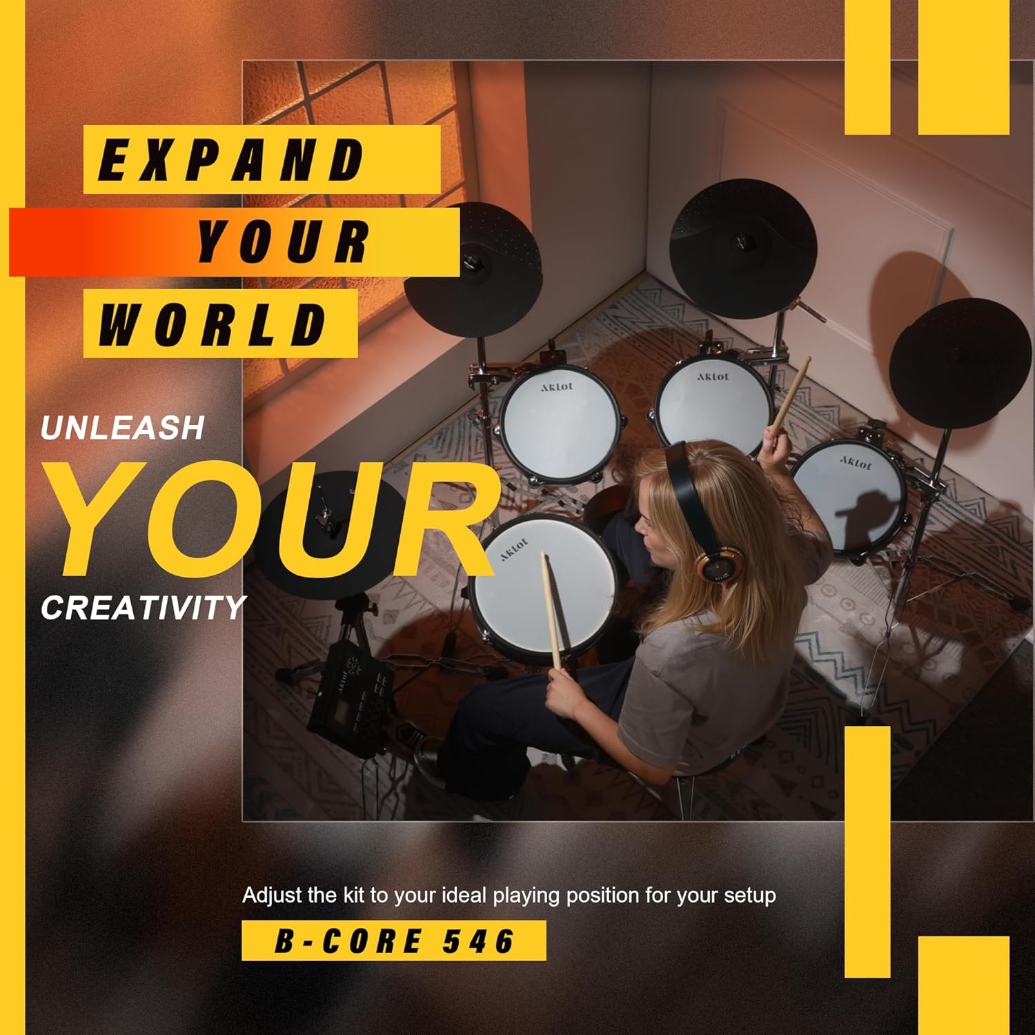 | Material | All-Independent Adjustable Stand System, Drum Set, Drum Sticks, Electric Drum Set, Electronic Drum Set, Full Size Drum Set, Independent Bass Drum, Independent Hi-Hat, Iron, Mesh Drum Pads, Triple Zone Silicon Cymbal |