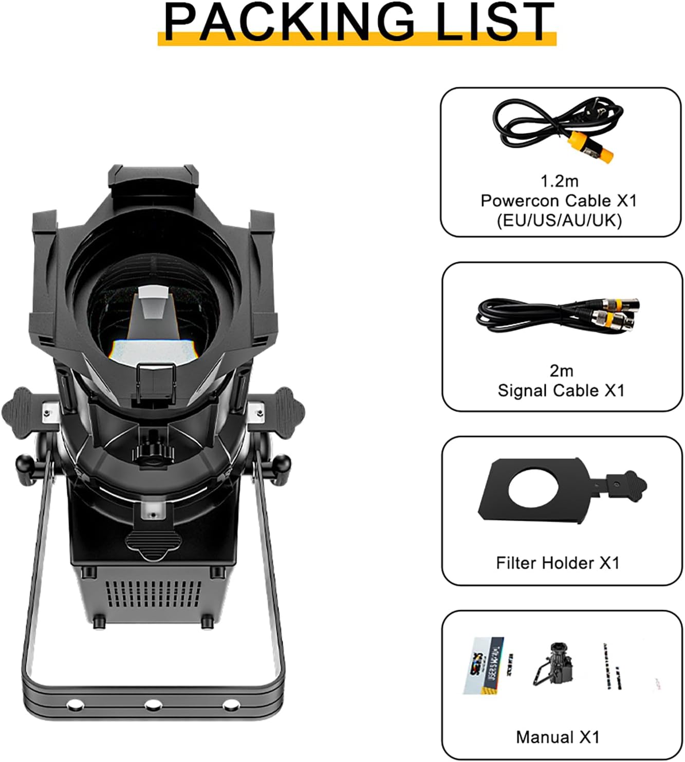 | Light Source Special Features | Adjustable color temperature, smooth dimming, precise light shaping, quiet cooling system |